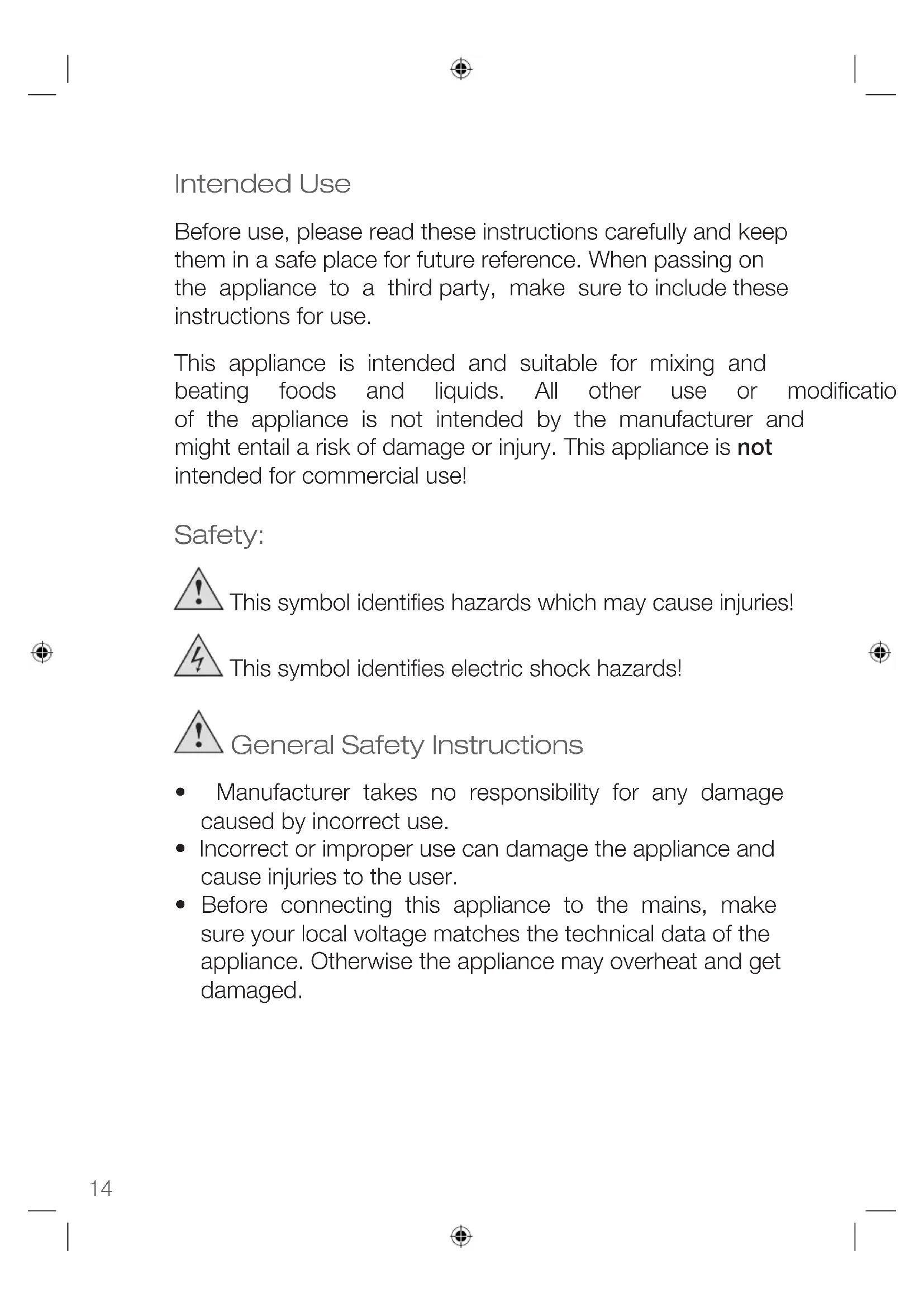 - Before connecting this appliance to the mains, make sure your local voltage matches the technical data of the appliance.Otherwisetheappliancemayoverheatandget damaged.Instruction Manual ENGLISH