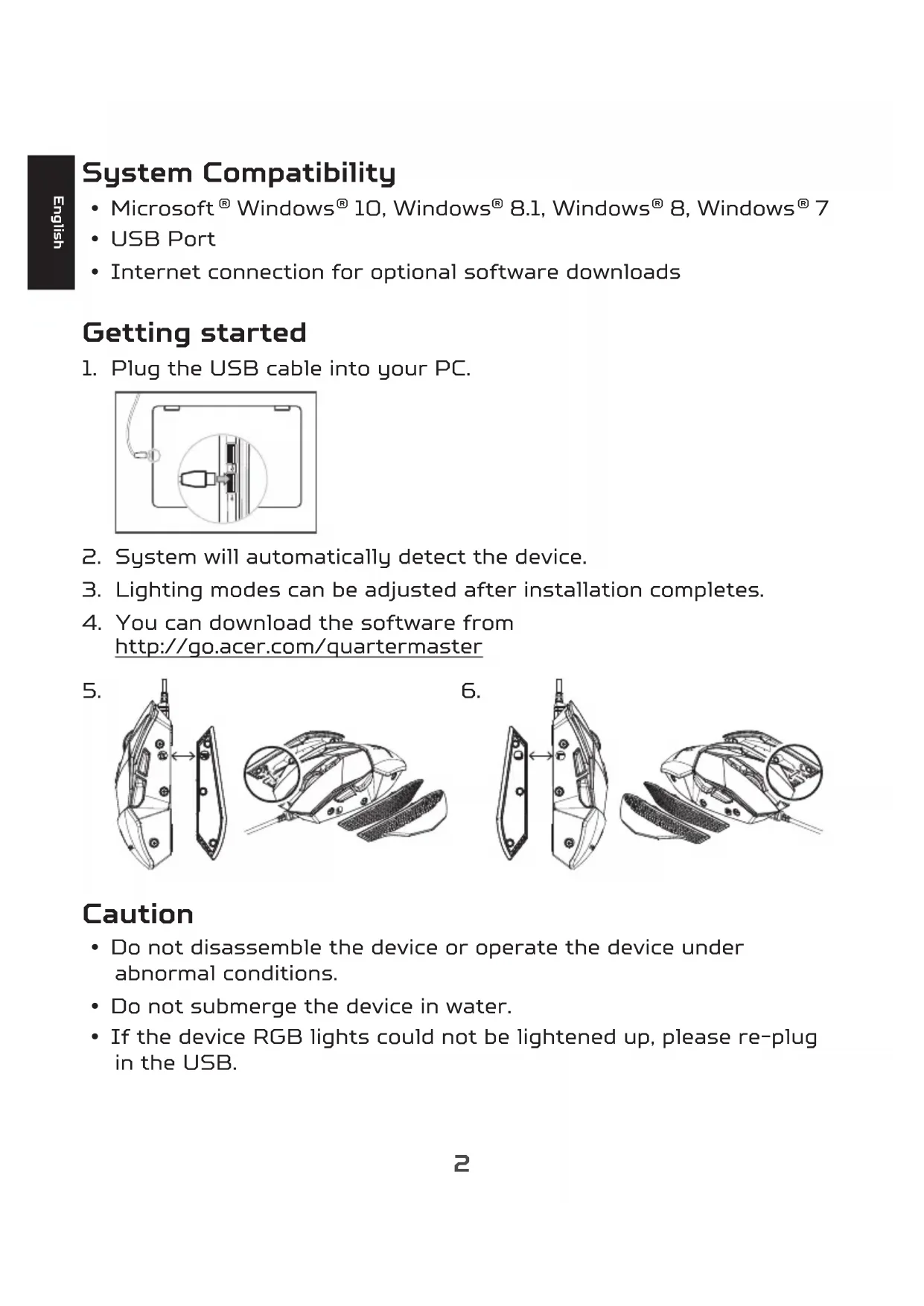 - If the device RGB lights could not be lightened up, please re-plug in the USB.3 English