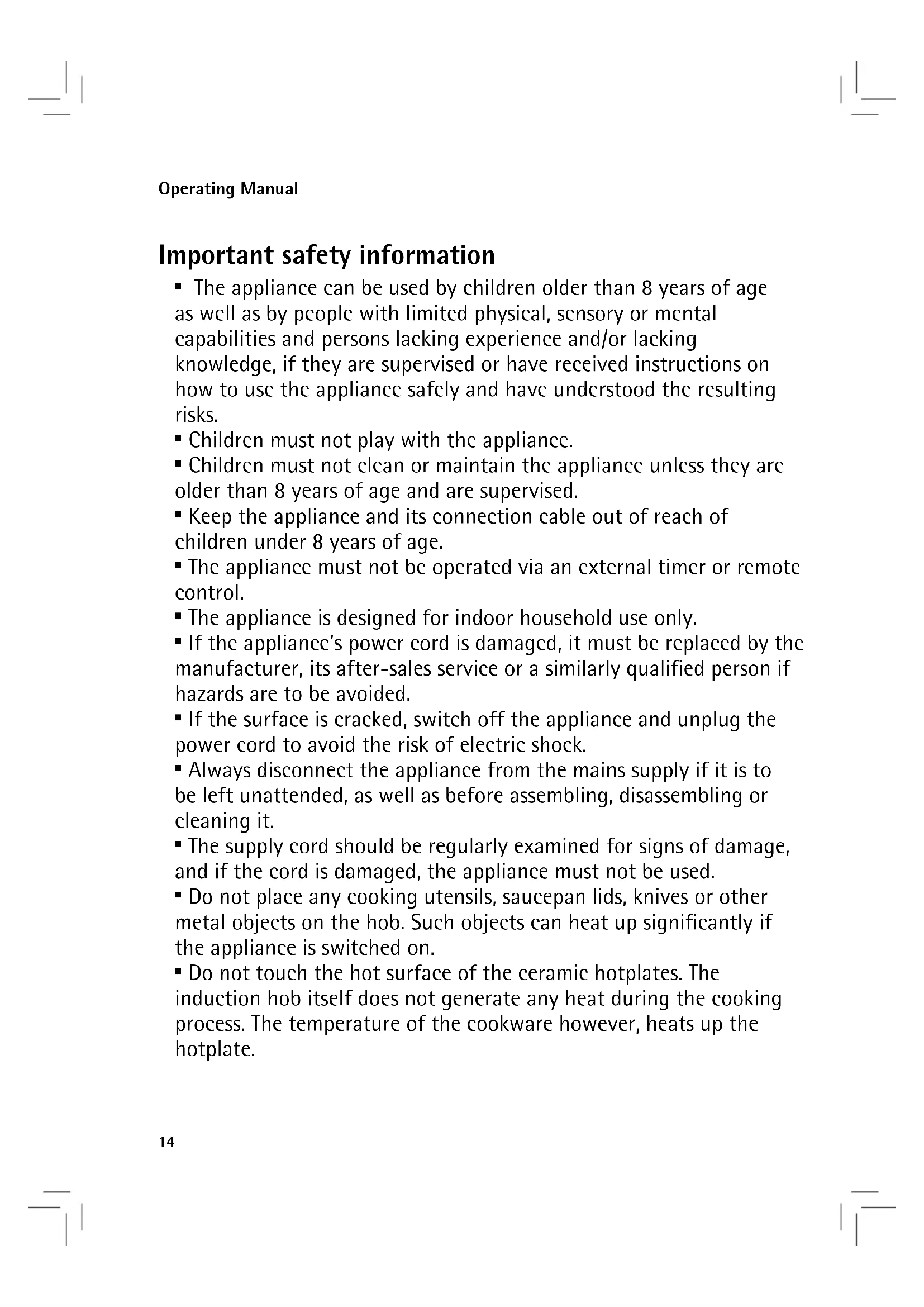 - The appliance can be used by children older than 8 years of age as well as by people with limited physical, sensory or mental capabilities and persons lacking experience and/or lacking knowledge, if they are supervised or have received instructions on how to use the appliance safely and have understood the resulting risks.