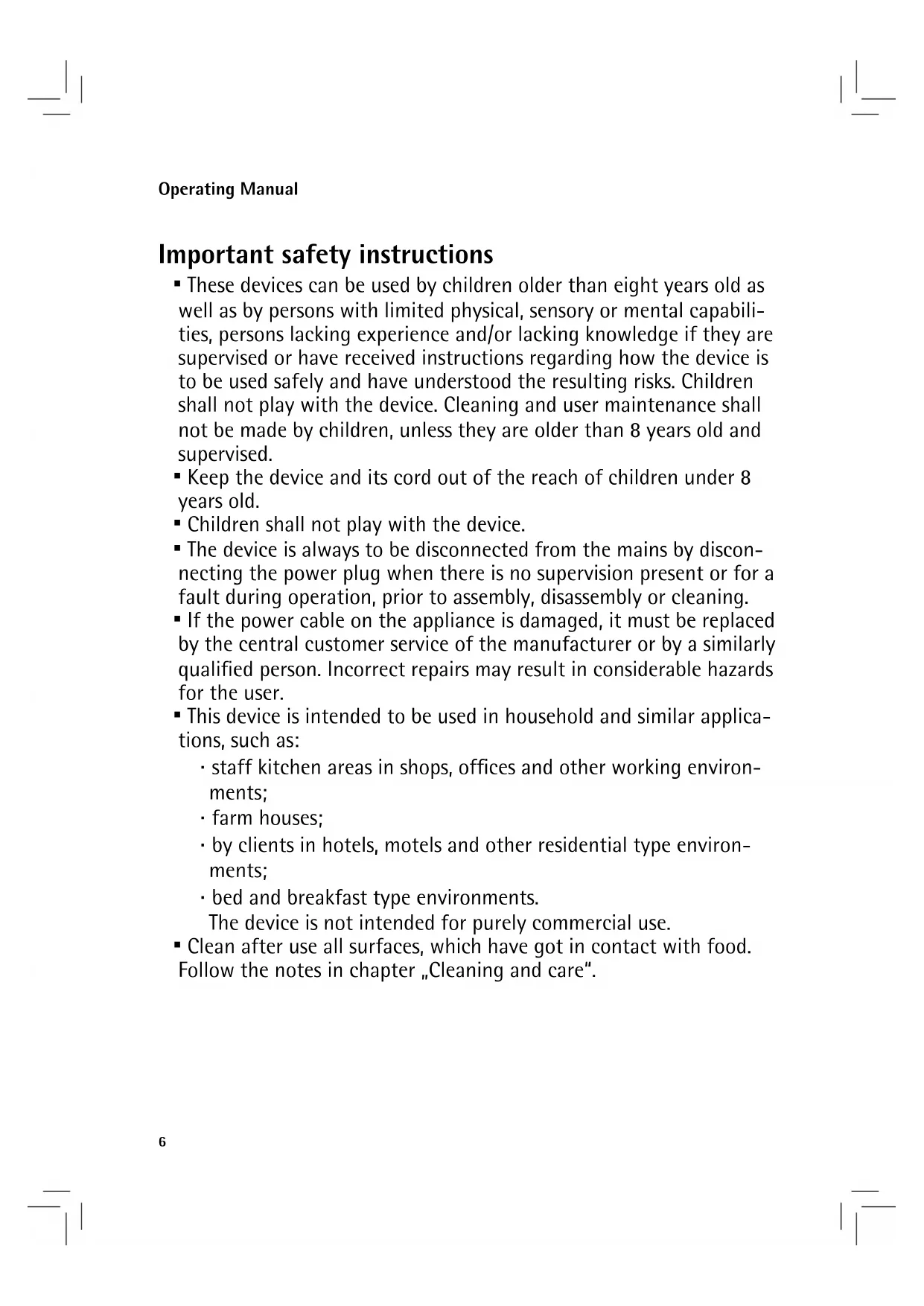 Please read these instructions carefully. They contain important notes for the use, safety and maintenance of the appliance. Keep them in a safe place and pass them on to any next user. Only use the appliance for the purpose intended and as specified in these instructions. Be sure to follow the safety information when using the appliance.