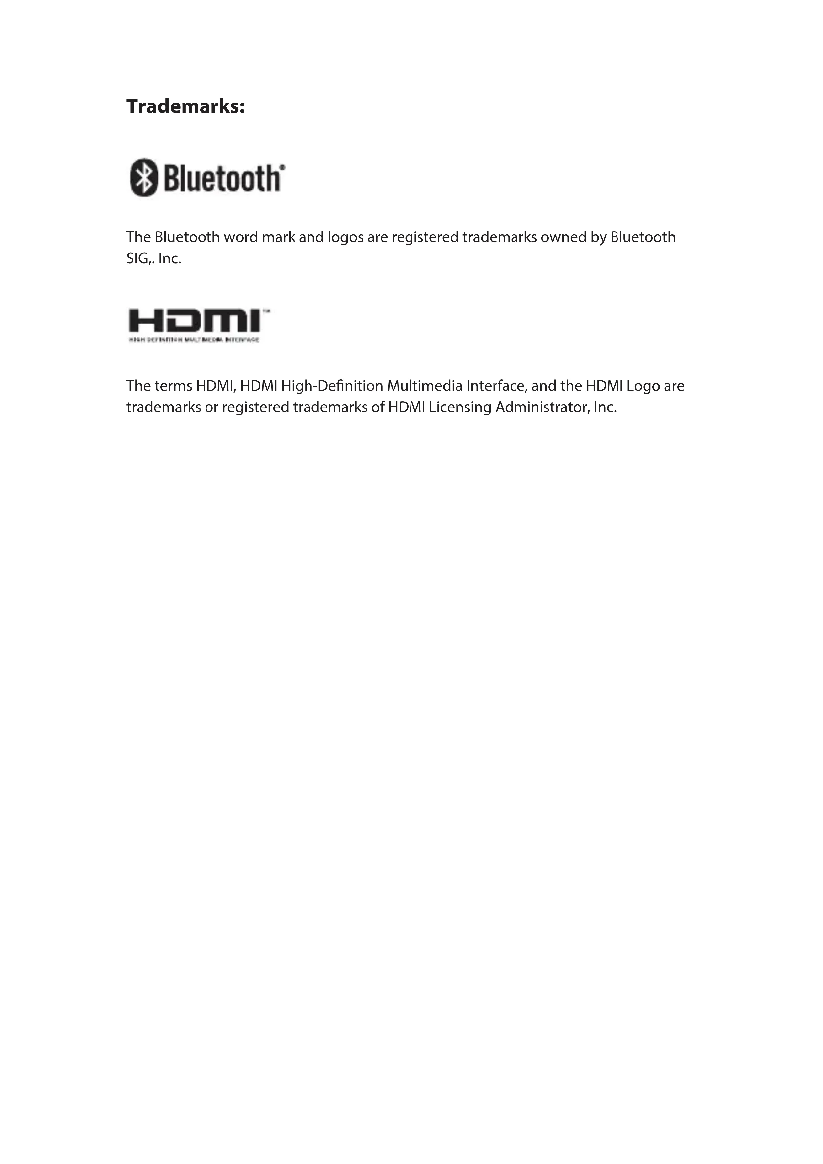 EN DE PLFRITESTrademarks: The Bluetooth word mark and logos are registered trademarks owned by Bluetooth SIG,. Inc. The terms HDMI, HDMI High-Denition Multimedia Interface, and the HDMI Logo are trademarks or registered trademarks of HDMI Licensing Administrator, Inc.4 Important safety instructions CAUTION