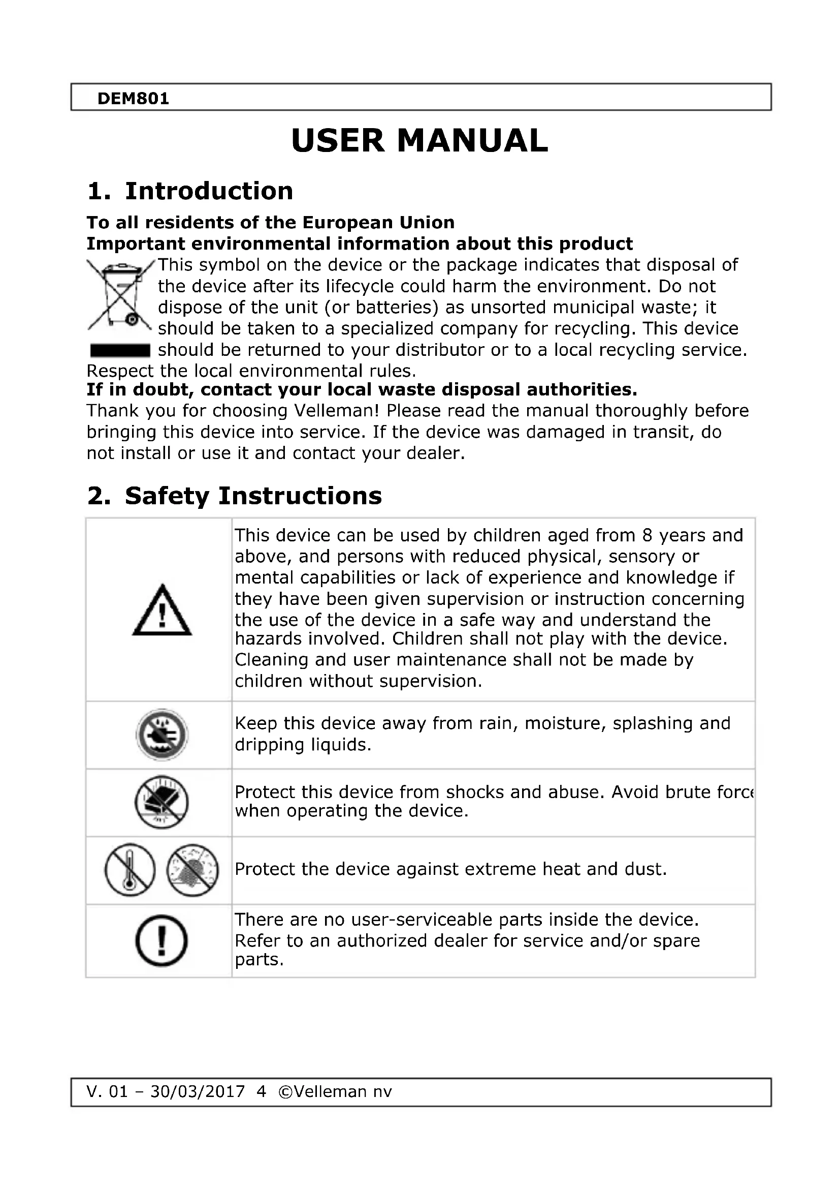 USER MANUAL DEM801 VELLEMAN