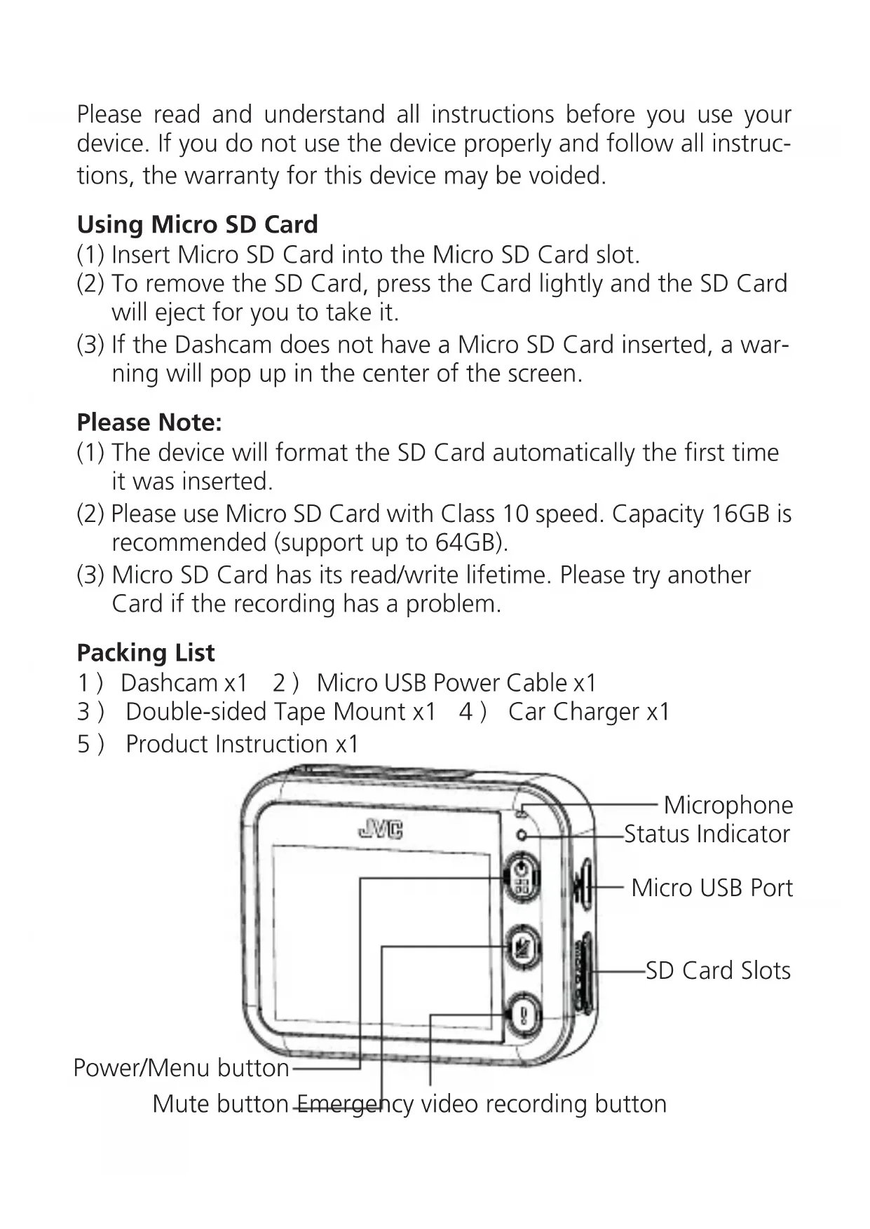 GCDRE10S - Dashcam JVC - Free user manual and instructions