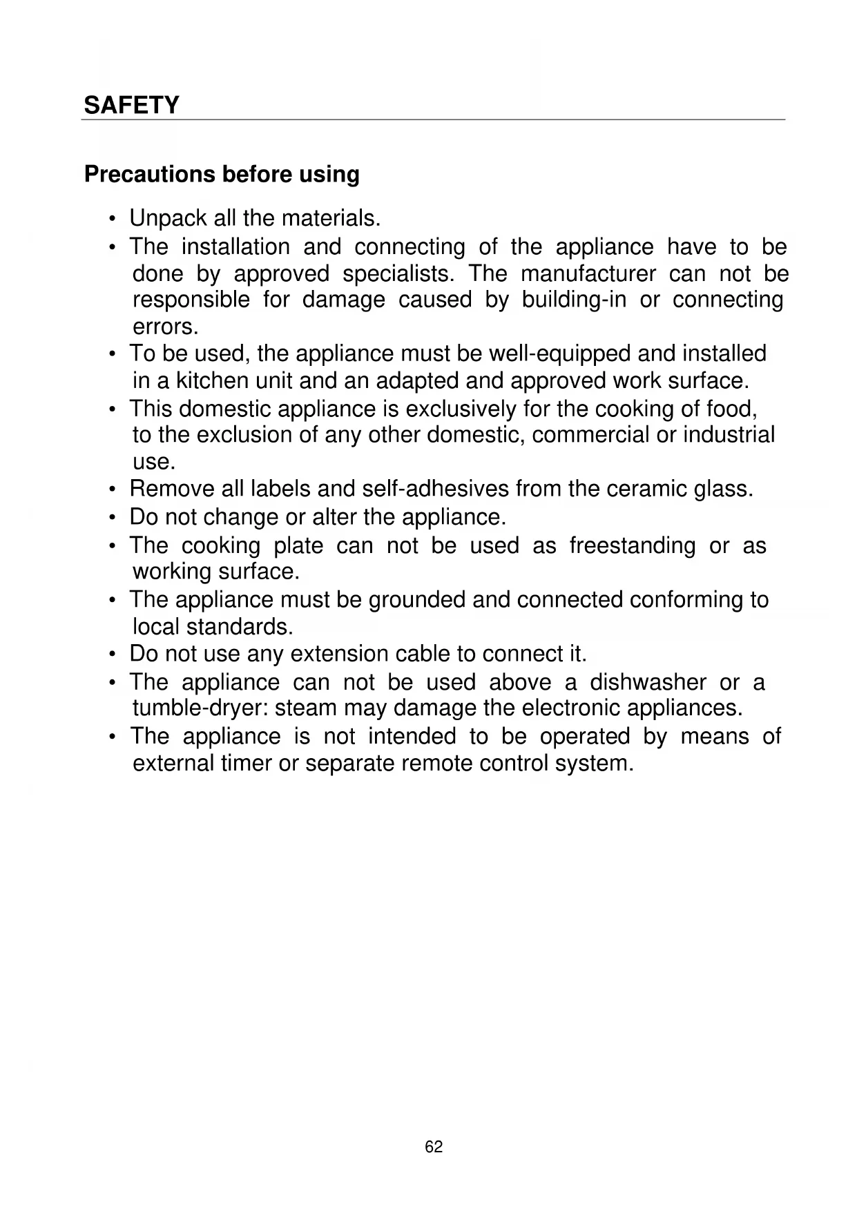 - The cooking plate can not be used as freestanding or as working surface.