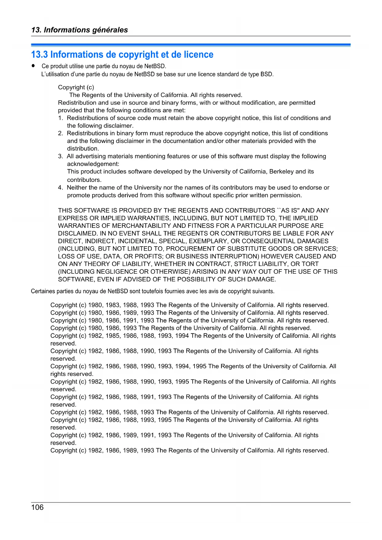 13. Informations généralesCopyright (c) 1982, 1986, 1990, 1991, 1993 The Regents of the University of California. All rights reserved. Copyright (c) 1982, 1986, 1990, 1993 The Regents of the University of California. All rights reserved. Copyright (c) 1982, 1986, 1990, 1993, 1994 The Regents of the University of California. All rights reserved. Copyright (c) 1982, 1986, 1991, 1993 The Regents of the University of California. All rights reserved. Copyright (c) 1982, 1986, 1991, 1993, 1994 The Regents of the University of California. All rights reserved. Copyright (c) 1982, 1986, 1991, 1993, 1995 The Regents of the University of California. All rights reserved. Copyright (c) 1982, 1986, 1993 The Regents of the University of California. All rights reserved. Copyright (c) 1982, 1986, 1993, 1994 The Regents of the University of California. All rights reserved. Copyright (c) 1982, 1986, 1993, 1994, 1995 The Regents of the University of California. All rights reserved. Copyright (c) 1982, 1986, 1993, 1995 The Regents of the University of California. All rights reserved. Copyright (c) 1982, 1988, 1991, 1993 The Regents of the University of California. All rights reserved. Copyright (c) 1983, 1990, 1993 The Regents of the University of California. All rights reserved. Copyright (c) 1983, 1993 The Regents of the University of California. All rights reserved. Copyright (c) 1985, 1986, 1993 The Regents of the University of California. All rights reserved. Copyright (c) 1985, 1986, 1993 The Regents of the University of California. All rights reserved. Copyright (c) 1986, 1989, 1991, 1993 The Regents of the University of California. All rights reserved. Copyright (c) 1986, 1993 The Regents of the University of California. All rights reserved. Copyright (c) 1987, 1991, 1993 The Regents of the University of California. All rights reserved. Copyright (c) 1987, 1993 The Regents of the University of California. All rights reserved. Copyright (c) 1987, 1993 The Regents of the University of California. All rights reserved. Copyright (c) 1988 Regents of the University of California. All rights reserved Copyright (c) 1988 Stephen Deering. Copyright (c) 1988 University of Utah. Copyright (c) 1988, 1989, 1993 The Regents of the University of California. All rights reserved. Copyright (c) 1988, 1991, 1993 The Regents of the University of California. All rights reserved. Copyright (c) 1988, 1992, 1993 The Regents of the University of California. All rights reserved. Copyright (c) 1988, 1993 The Regents of the University of California. All rights reserved. Copyright (c) 1989 The Regents of the University of California. All rights reserved. Copyright (c) 1989, 1991, 1993 The Regents of the University of California. All rights reserved. Copyright (c) 1989, 1993 The Regents of the University of California. All rights reserved. Copyright (c) 1989, 1993, 1994 The Regents of the University of California. All rights reserved. Copyright (c) 1990, 1991, 1993 The Regents of the University of California. All rights reserved. Copyright (c) 1990, 1993 The Regents of the University of California. All rights reserved. Copyright (c) 1991, 1993 The Regents of the University of California. All rights reserved. Copyright (c) 1991, 1993, 1994 The Regents of the University of California. All rights reserved. Copyright (c) 1992 Regents of the University of California. All rights reserved. Copyright (c) 1992, 1993 The Regents of the University of California. All rights reserved. Copyright (c) 1993 The Regents of the University of California. All rights reserved. Copyright (c) 1993 Adam Glass Copyright (C) 1993 by Sun Microsystems, Inc. All rights reserved. Copyright (c) 1994 Gordon W. Ross Copyright (c) 1994 Winning Strategies, Inc. All rights reserved. Copyright (c) 1995 The Regents of the University of California. All rights reserved. Copyright (C) 1995, 1996, 1997, and 1998 WIDE Project. All rights reserved. Copyright (c) 1996 The Regents of the University of California. All rights reserved. Copyright (c) 1996 John S. Dyson All rights reserved. Copyright (c) 1996 Matt Thomas. All rights reserved. Copyright (c) 1996 Matthew R. Green. All rights reserved. Copyright (c) 1996 Paul Kranenburg Copyright (c) 1996, 1997, 1999, 2001 The NetBSD Foundation, Inc. All rights reserved. Copyright (c) 1996, 2000 Christopher G. Demetriou. All rights reserved.