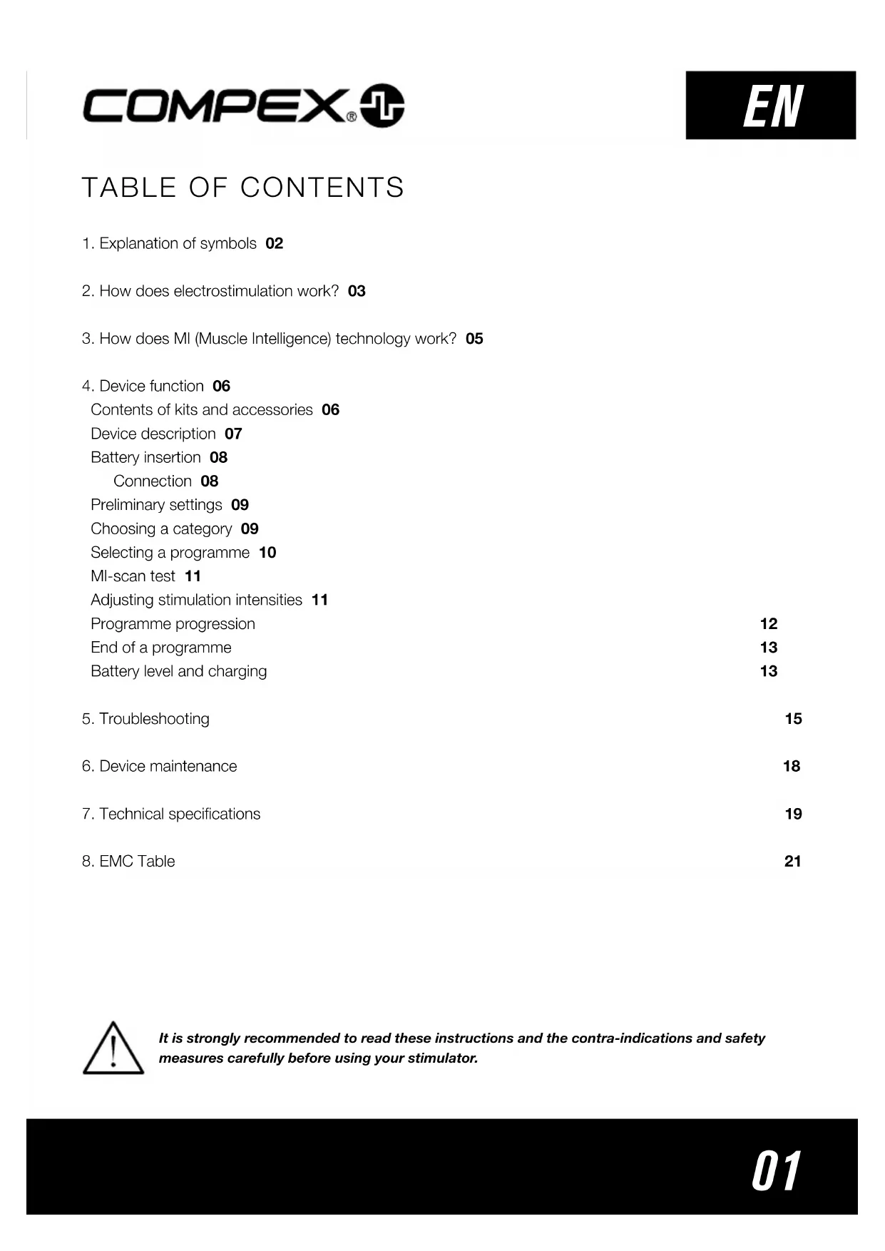 It is strongly recommended to read these instructions and the contra-indications and safety measures carefully before using your stimulator.02