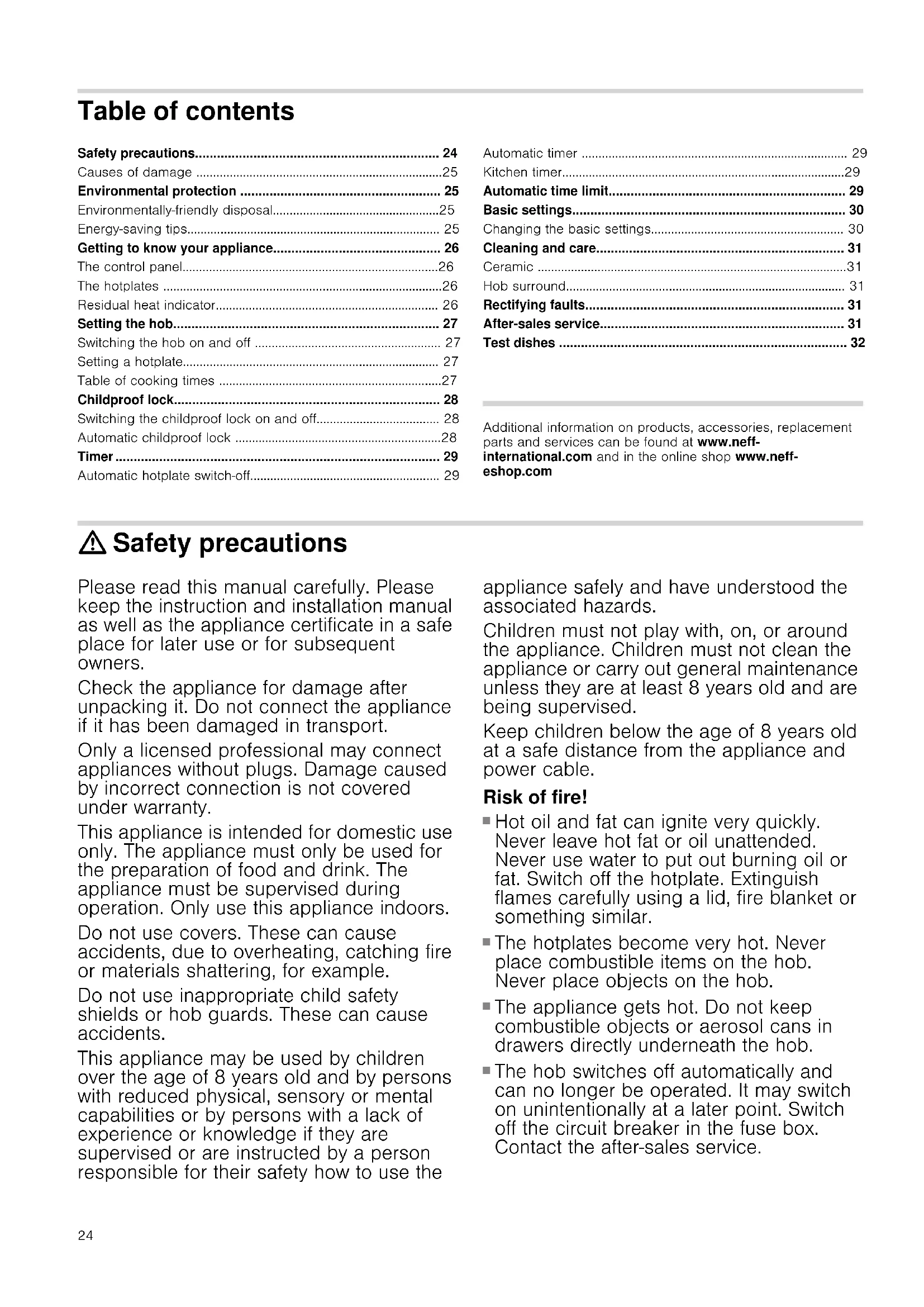 Additional information on products, accessories, replacement parts and services can be found at www.neff-