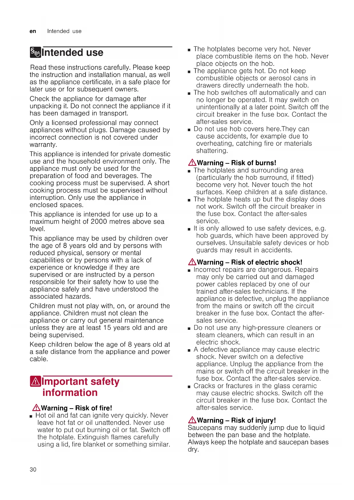 It is only allowed to use safety devices, e.g. hob guards, which have been approved by ourselves. Unsuitable safety devices or hob guards may result in accidents.
