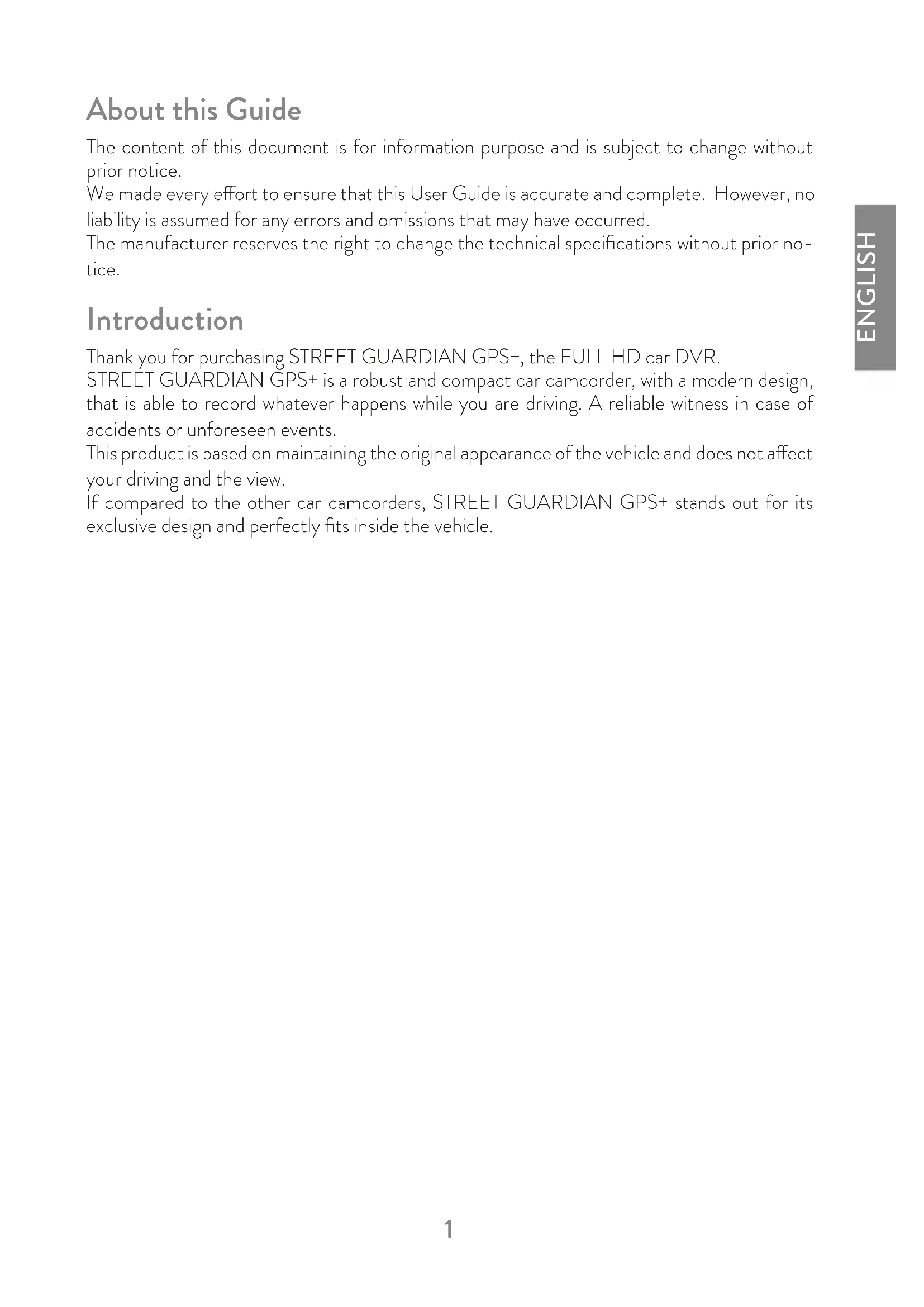 - To avoid aecting the videos, do not use STREET GUARDIAN GPS+ in presence of excessive dust or fog.