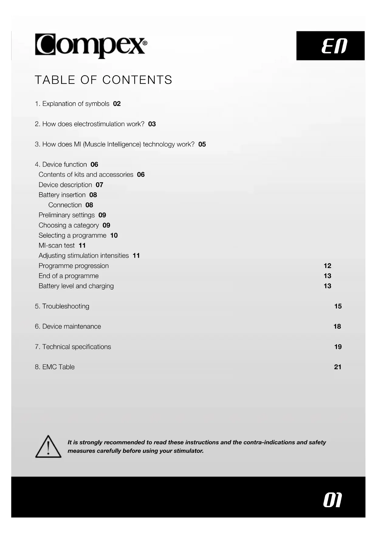 It is strongly recommended to read these instructions and the contra-indications and safety measures carefully before using your stimulator.02