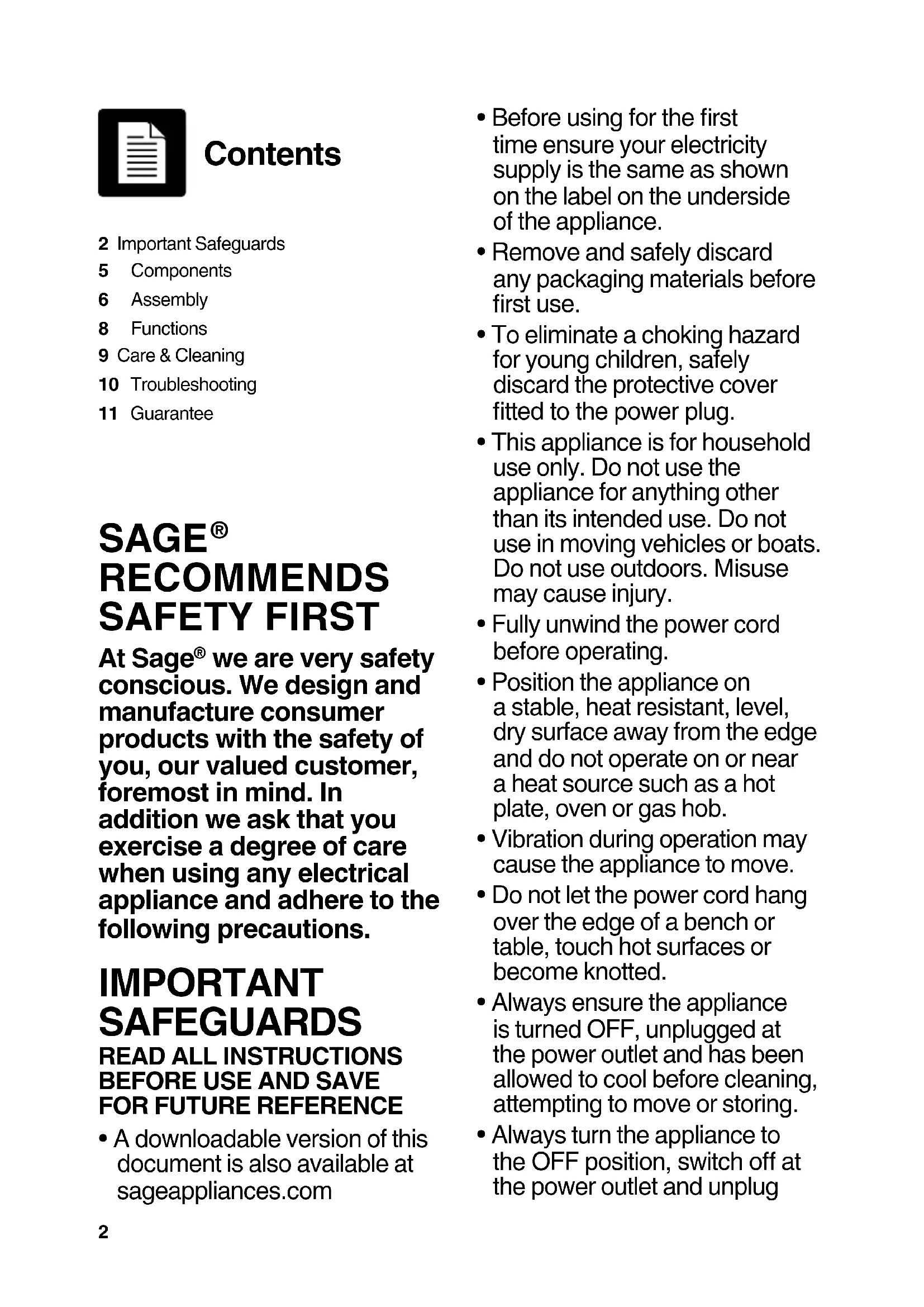- A downloadable version of this document is also available at sageappliances.com