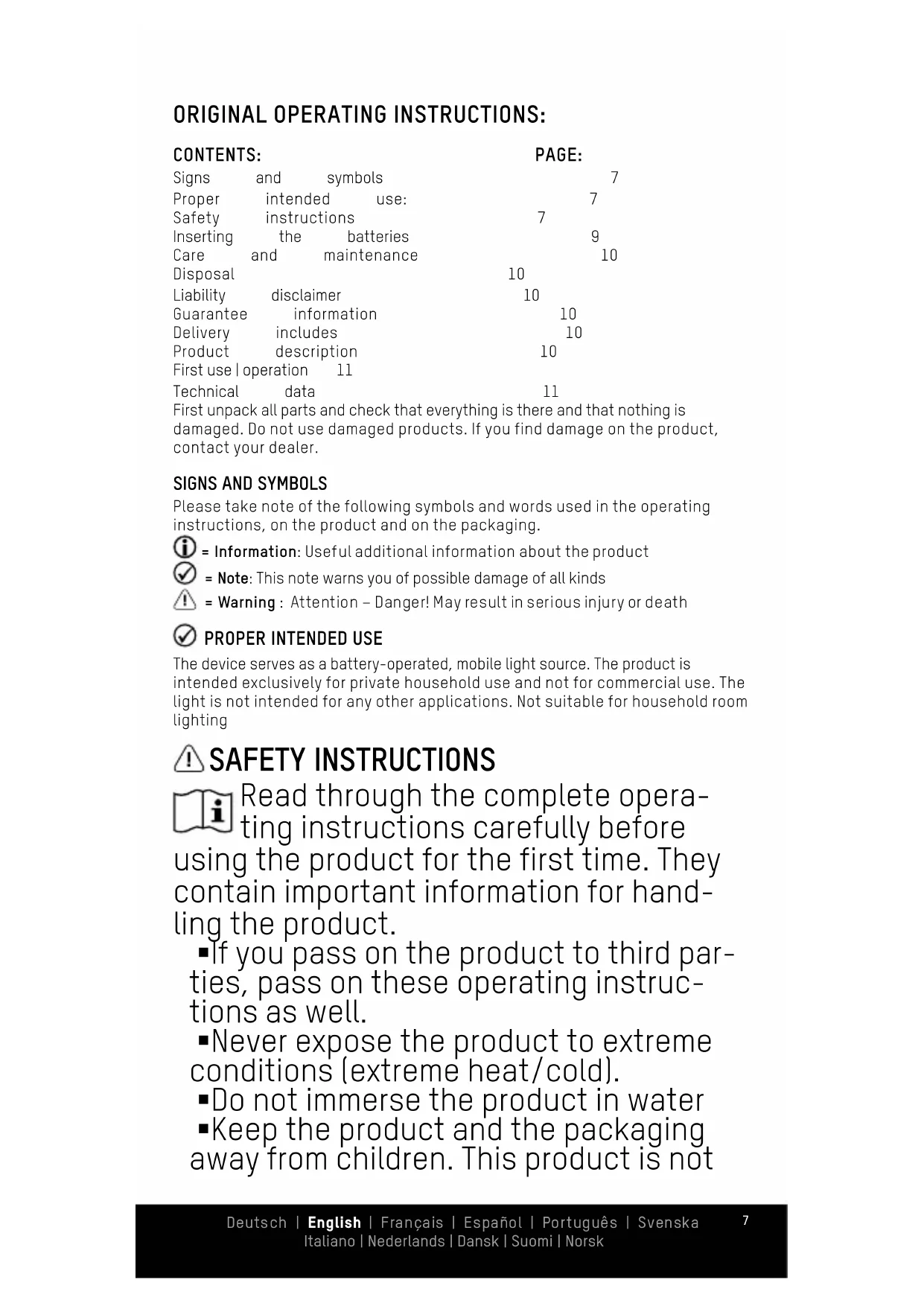 Safety instructions 7