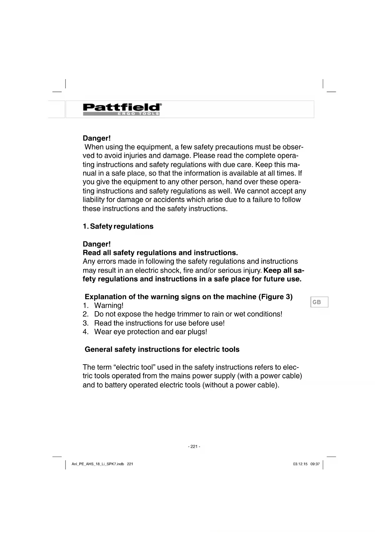 Find the device manual for free PEAHS 18 Li Pattfield in PDF.