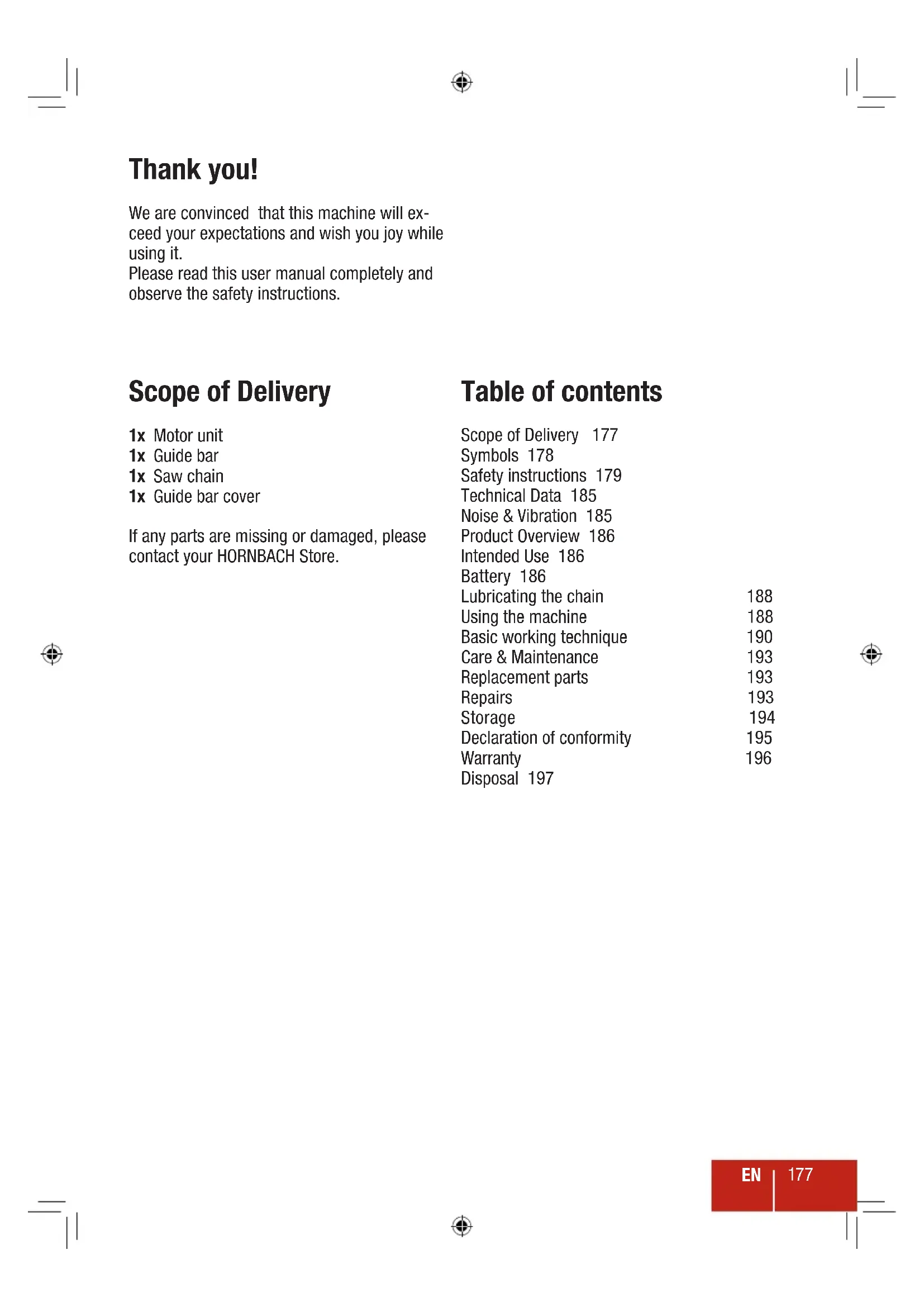 Scope of Delivery 177