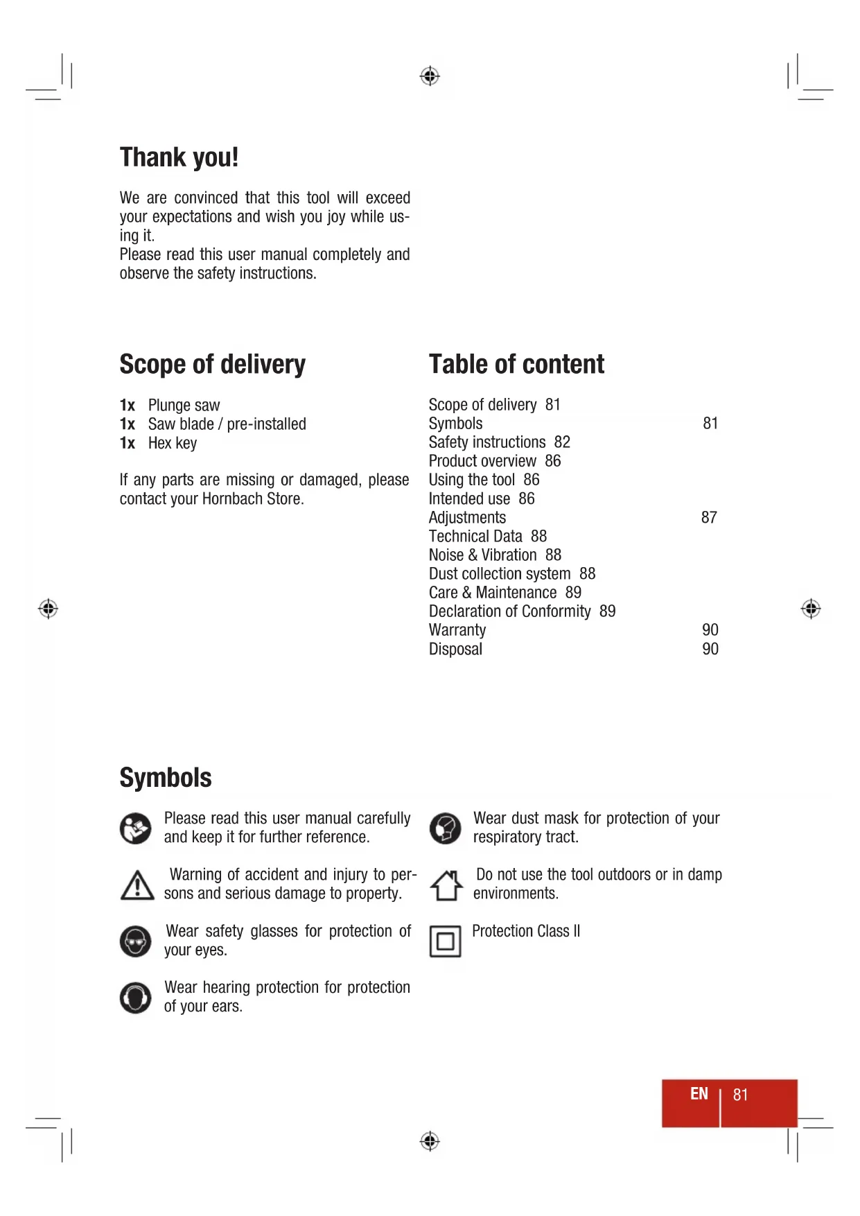 In case of malfunctions, which are pointing out material or manufacturing faults, please contact your Hornbach store: