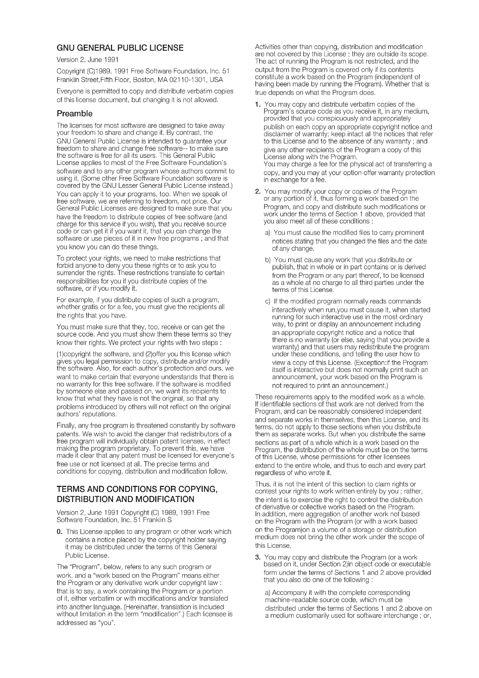 Version 2, June 1991 Copyright (C) 1989, 1991 Free Software Foundation, Inc. 51 Franklin S