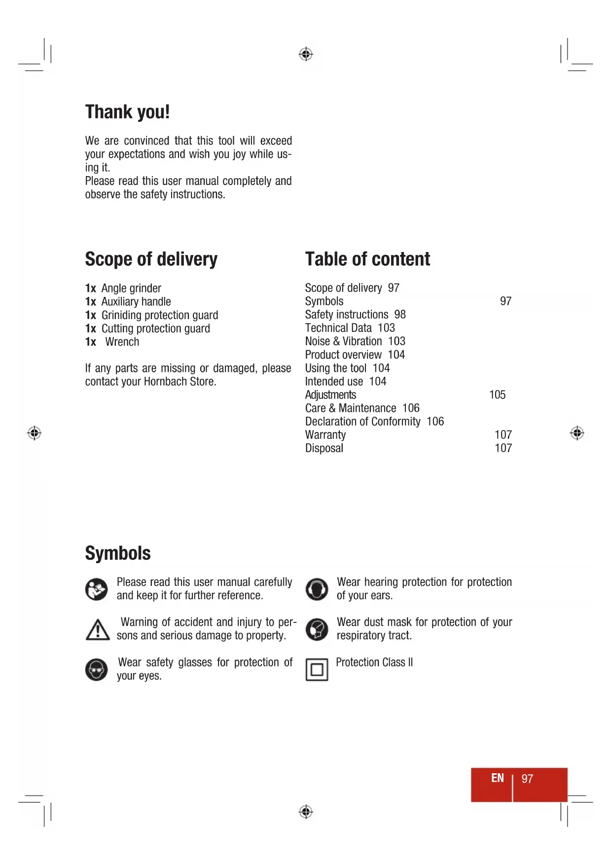 In case of malfunctions, which are pointing out material or manufacturing faults, please contact your Hornbach store: