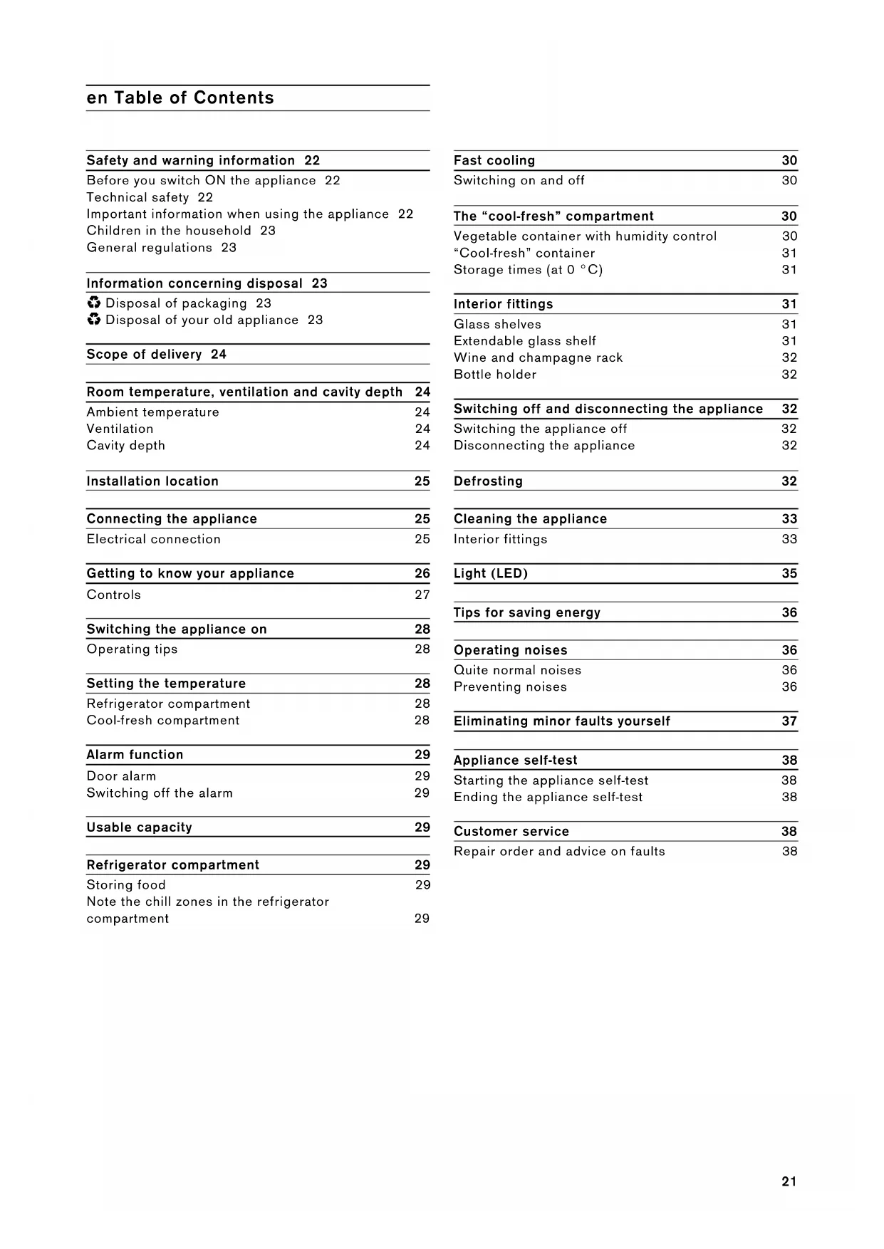 Disposal of your old appliance 23