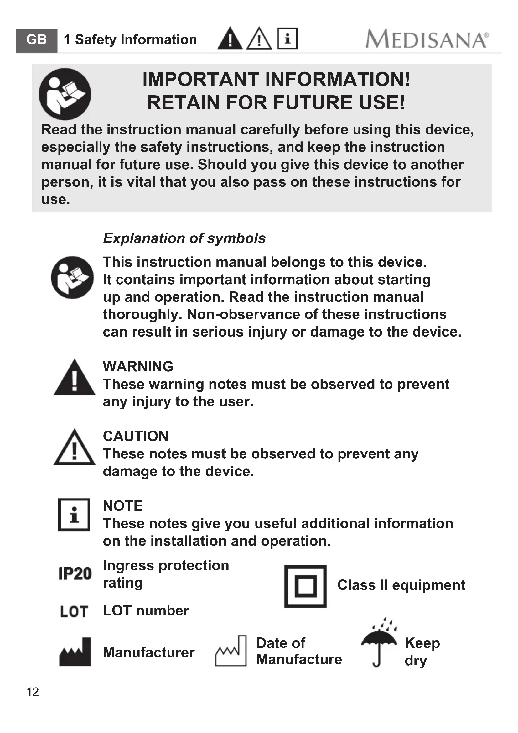 The current version of this instruction manual can be found under www.medisana.com