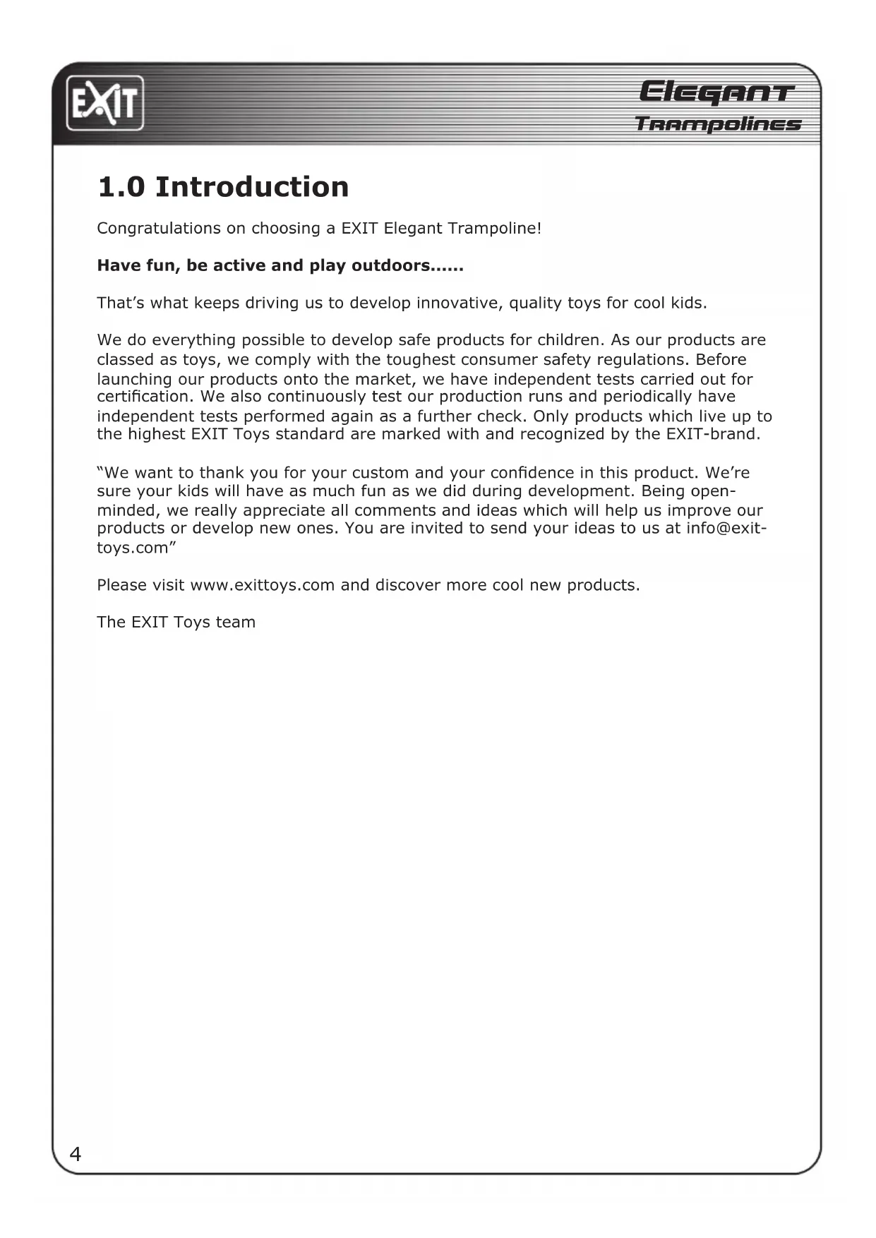 Congratulations on choosing a EXIT Elegant Trampoline!