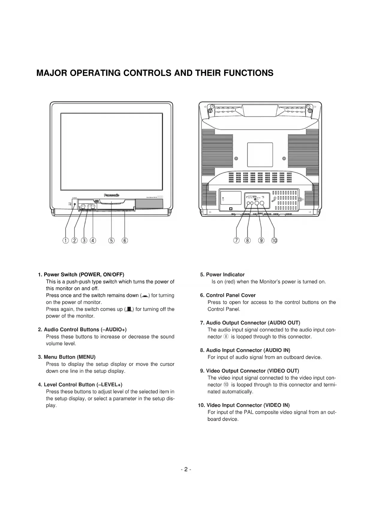 For input of the PAL composite video signal from an out- board device. AUDIO VIDEO OUT IN OUT IN Color Monitor WV-CK 2020POWER–AUDIO+ –LEVEL+MENU