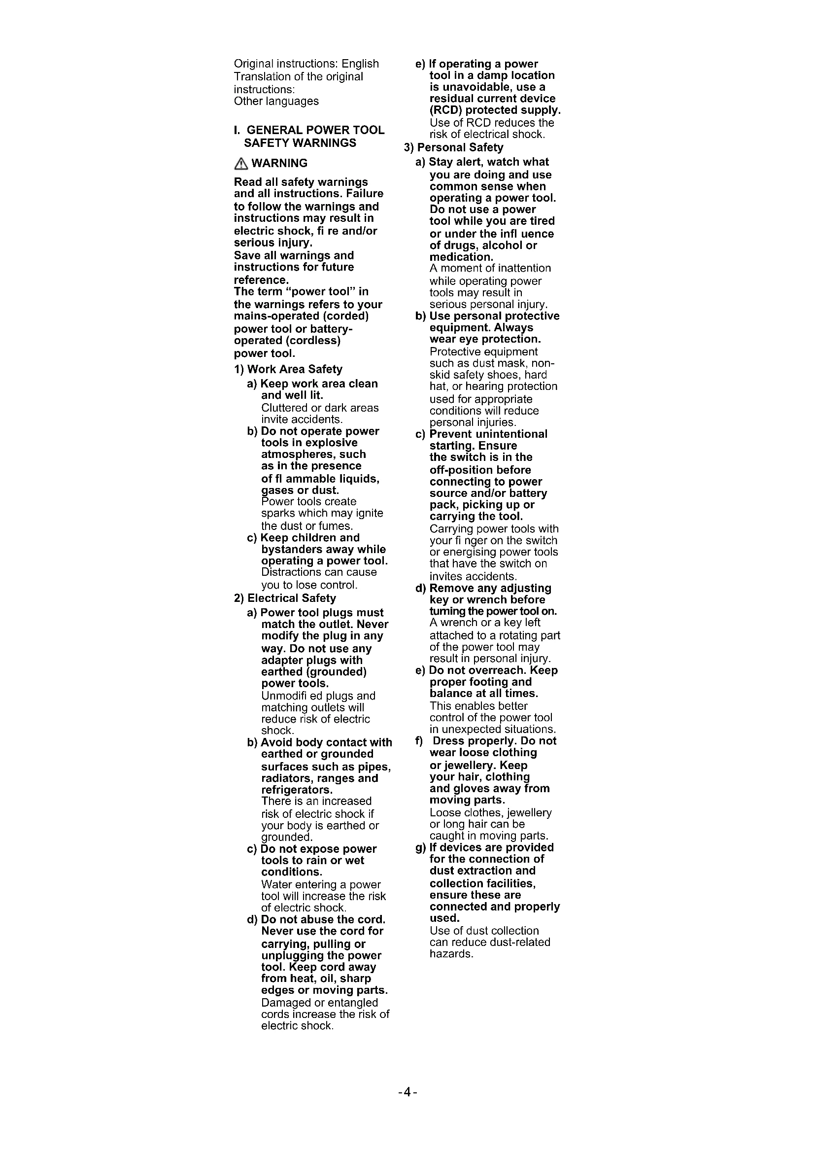 4) Power Tool Use and Care