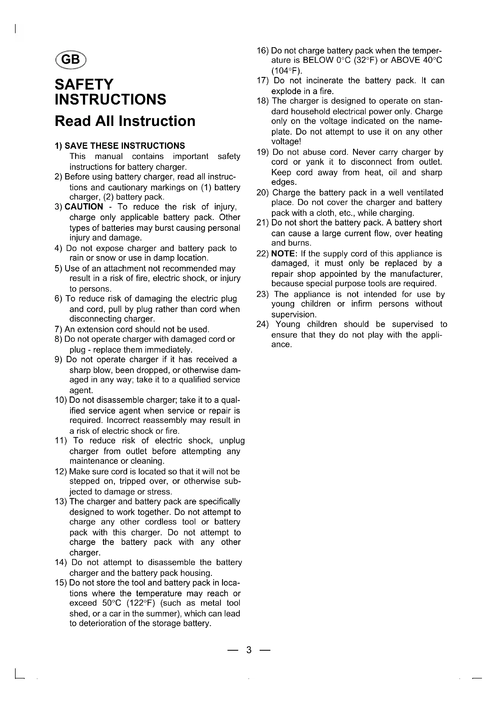 2) Before using battery charger, read all instruc-