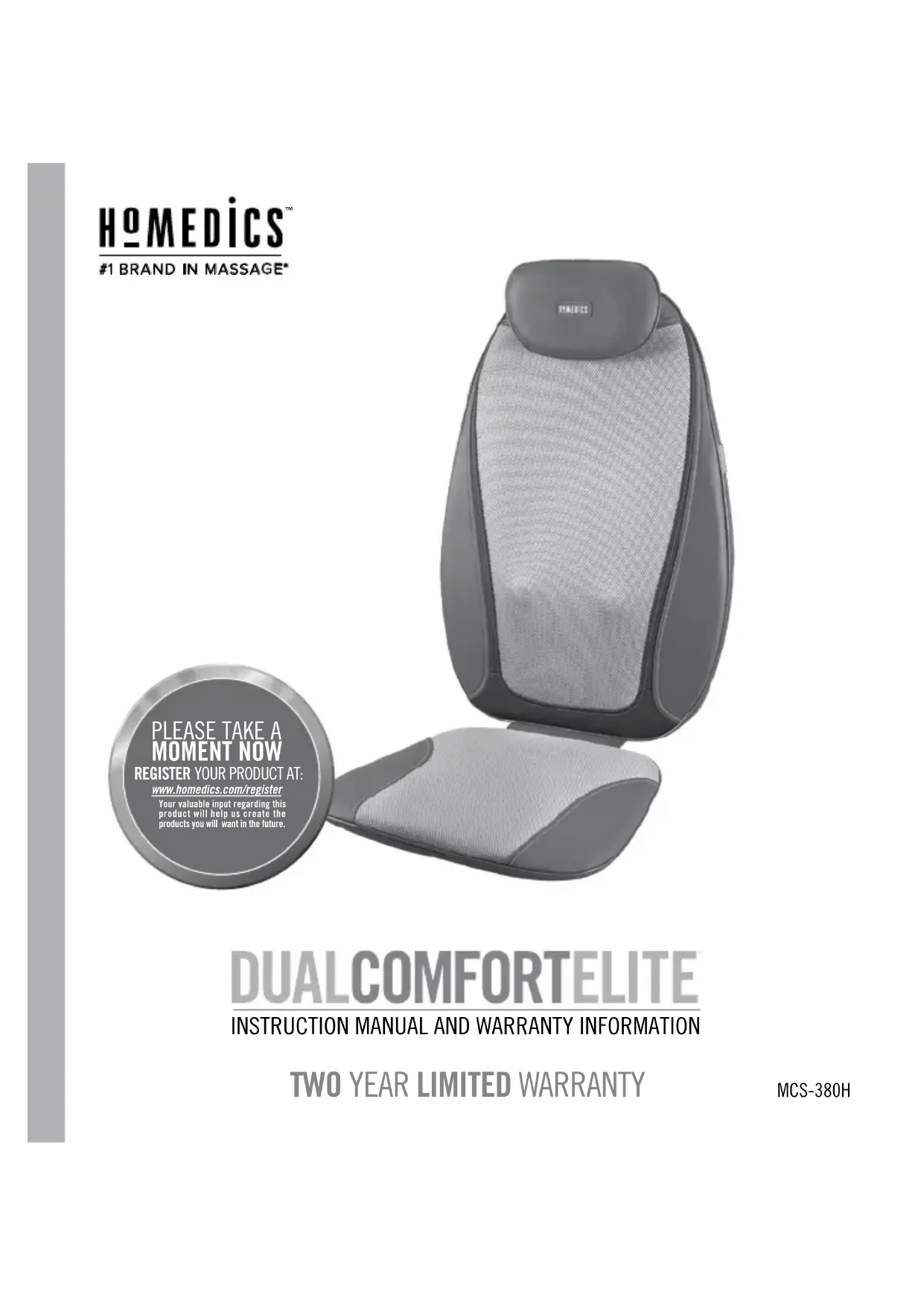 MCS-380H www.homedics.com/registerYour valuable input regarding this product will help us create the products you will want in the future.