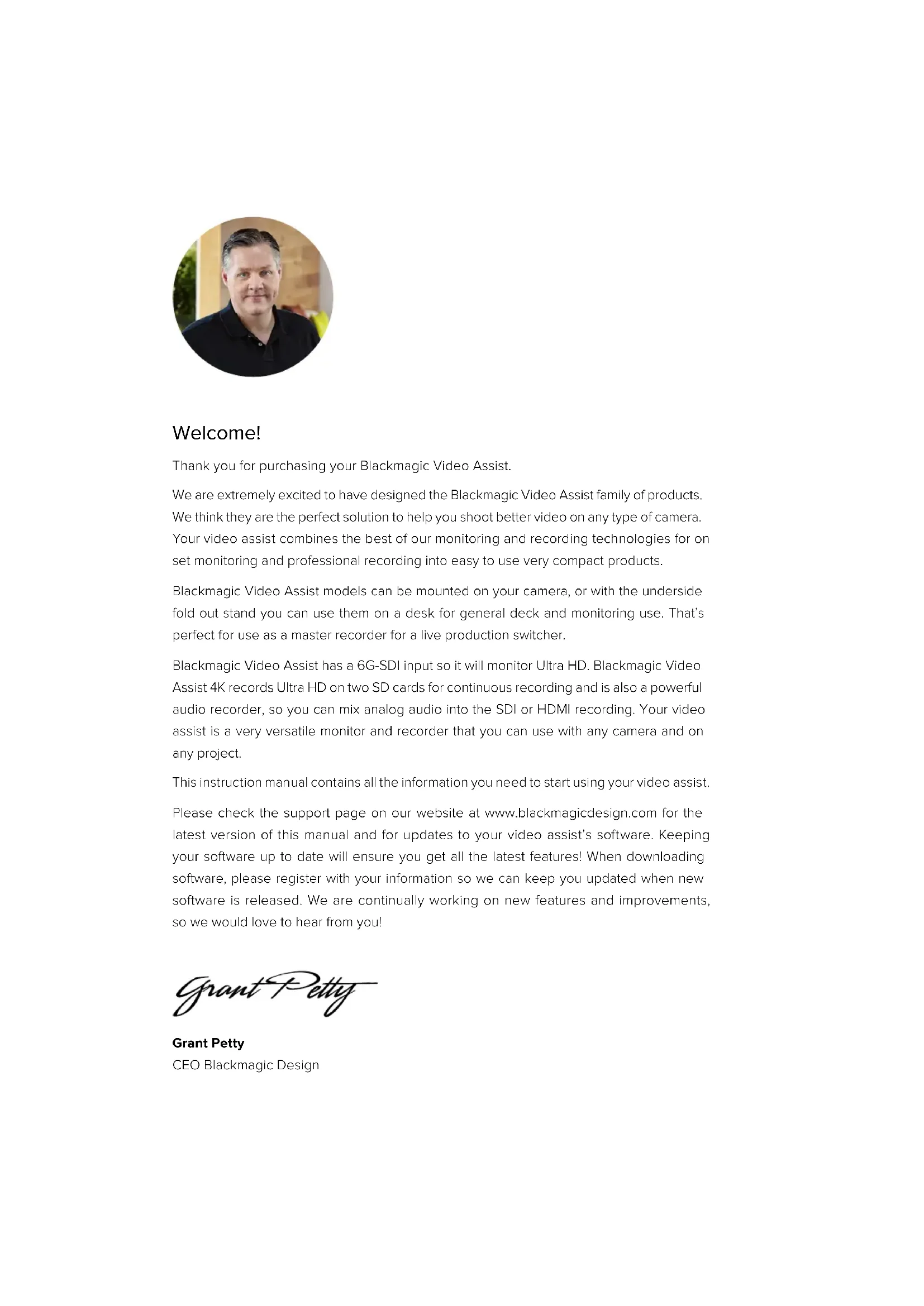 USER MANUAL Video Assist 4K digital video recorder Blackmagic Design