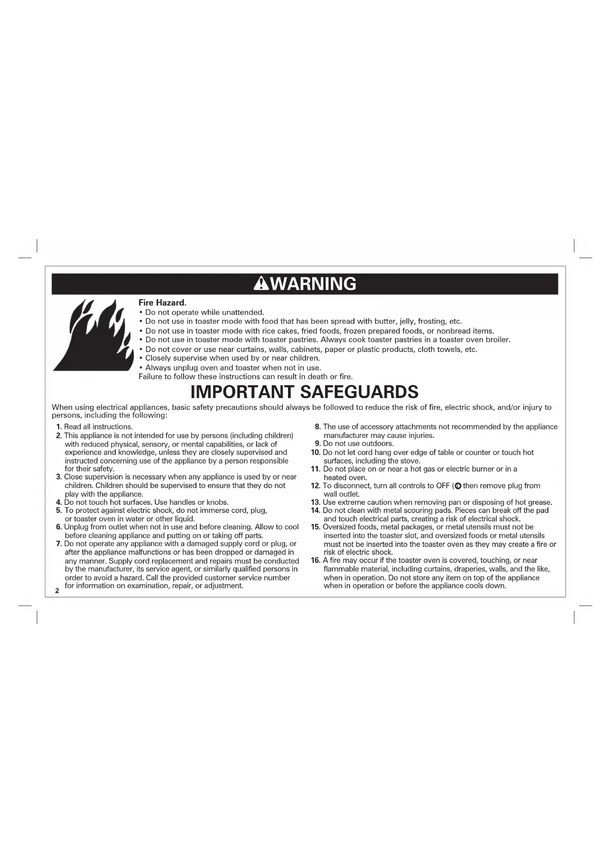 30. Do not operate toaster function unattended.