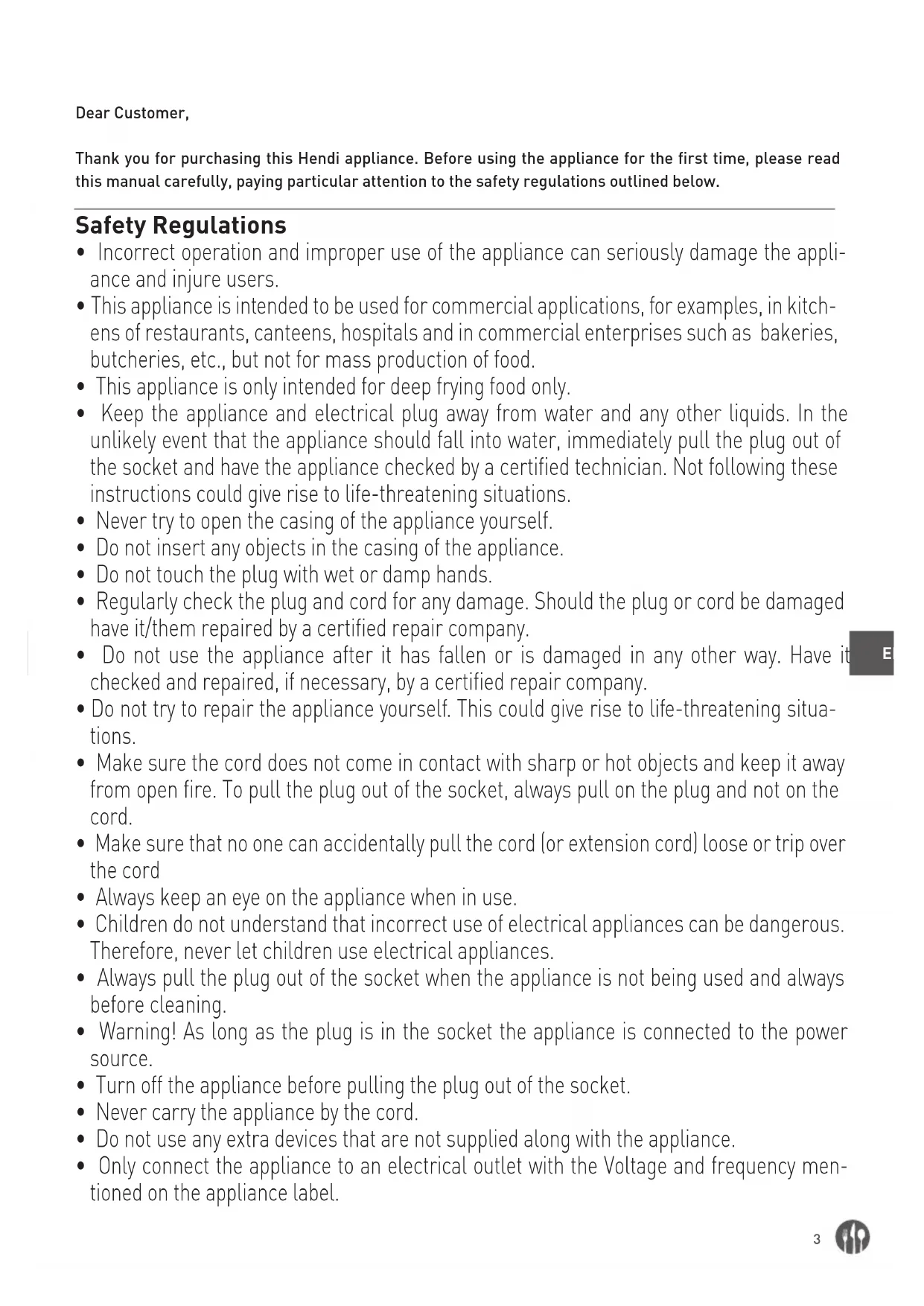 - This appliance is intended only for deep frying appropriate food such as fries, etc in com- mercial use. Any other use may lead to damage of the appliance or personal injury.