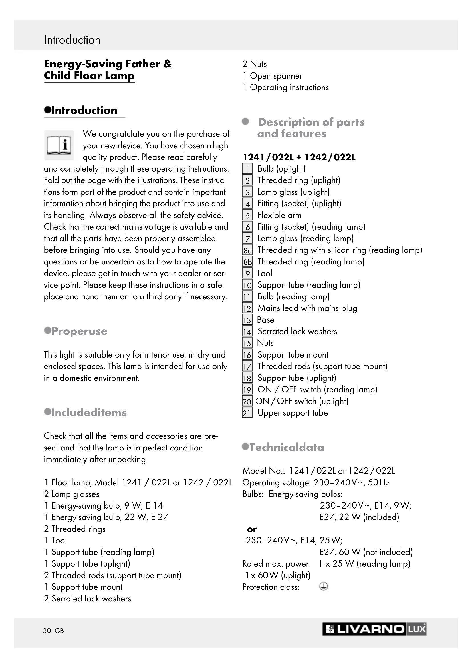 USER MANUAL 1241022L+1242022L Livarno Lux
