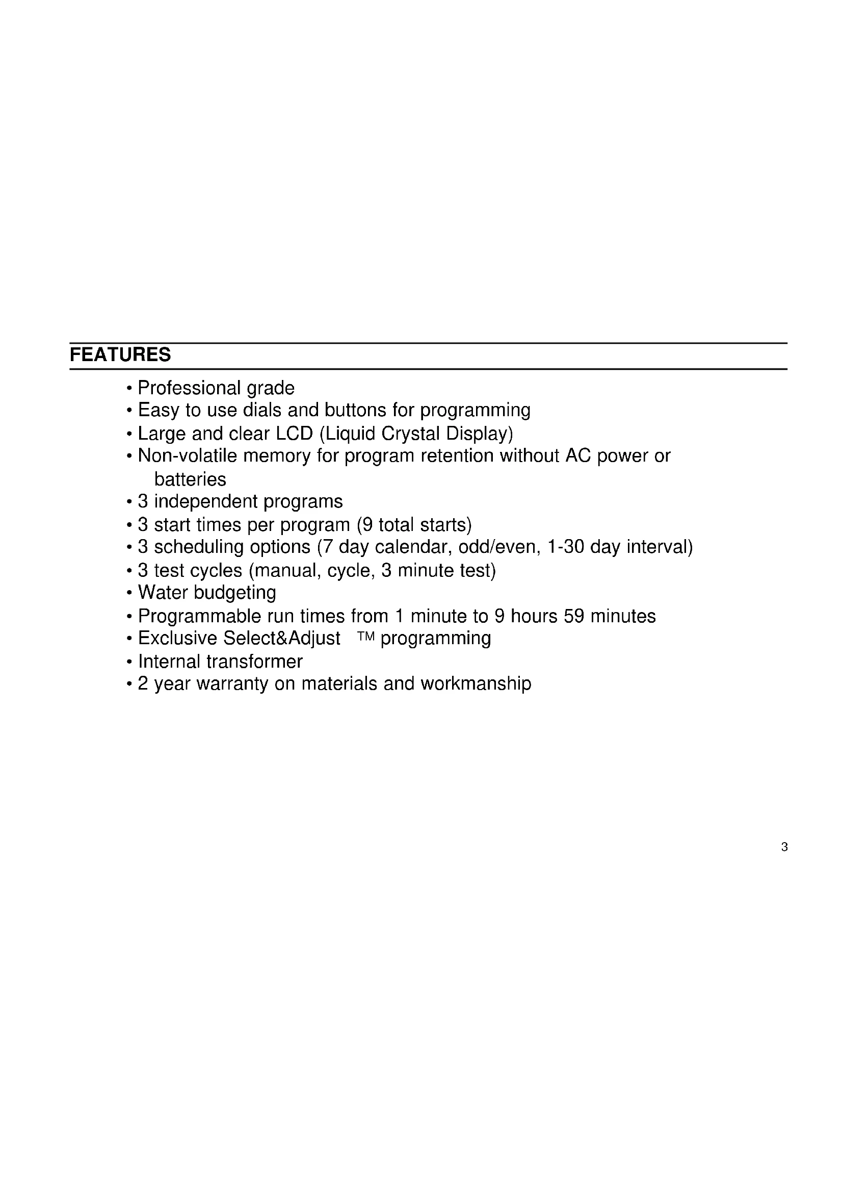 TO PROGRAM PLACE THE MODE DIAL, NAME PROGRAM ADDITION PROGRAM ON/OFF LARGE HUAL POSITION SELECT +1 ADJUST +2 AMTIME START TIME NUTS START DAY ORDER SEMICOLE THE PROGRAM DIAL can be in PA, B, and BF of the reprogramming. RETURN NODE DIAL, TO ROW POSITION WHEN PROGRAMSING IS COMPLETE TO RUN PROGRAMME. NOTE: MANUAL, CHOLE AND PROCESSED ORDER BE SHOWN IN THE MAIN STICK - 100% RUN & OFF TO RUN TEST PLACE THE MODE DIAL IN THE SE ADDITION PROGRAM ON/OFF LARGE HUAL POSITION SELECT +1 ADJUST +2 BALTIMED RUN TIME HOT PROCOMPARABLE STORAGE NET PROGRAMMEDIATE LEAVE MODE DIAL: IN 'ON' POSITION WHEN COMPLETE PROGRAMM. WELL RUN NE SCHEDULED: NOTE: Pending SELECT OR WHILE THE MANUAL, then is coming will. ADMINISTRATIEN WITHIN THE ACTIVE ZONE AND END TO END ON THE NEW NEEZONE ZONE 6:34PM Su IR T W Th F S Select Adjust AUTO + Mode Program A B C OFF Program NEISON SmartZone EZTHANK YOU for purchasing the SmartZone™ EZ electronic irrigation controller. You'll soon discover why we've dubbed it the "EZ". We are confident it will be the easiest and most reliable controller you will ever use. It's so "EZ", you'll probably be able to install and program this feature-packed controller without instructions. However, before installing and programming the controller, we recommend you read these instructions carefully to take full advantage of all the SmartZone™ EZ has to offer.