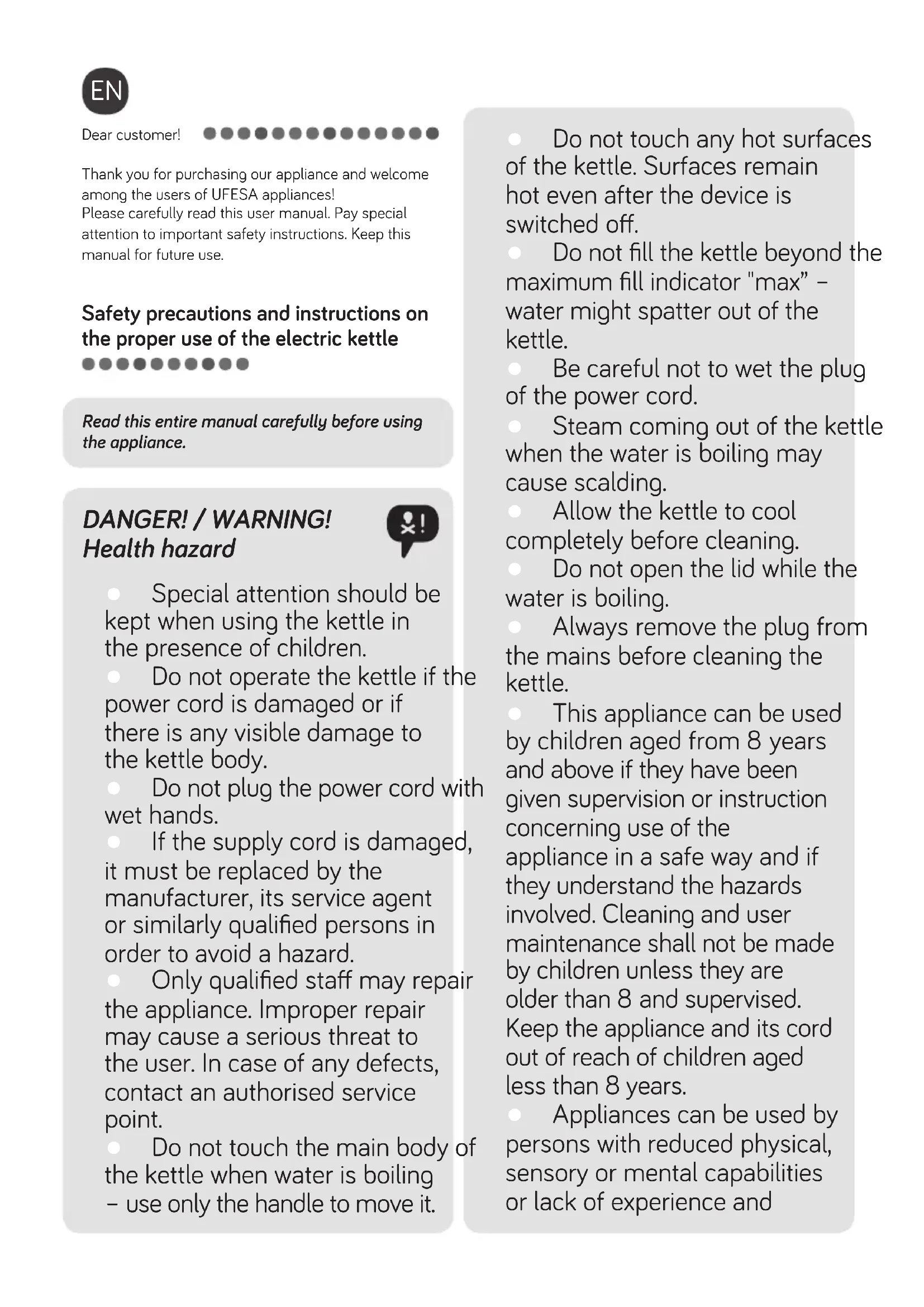 HA7000 - Kettle UFESA - Free user manual and instructions