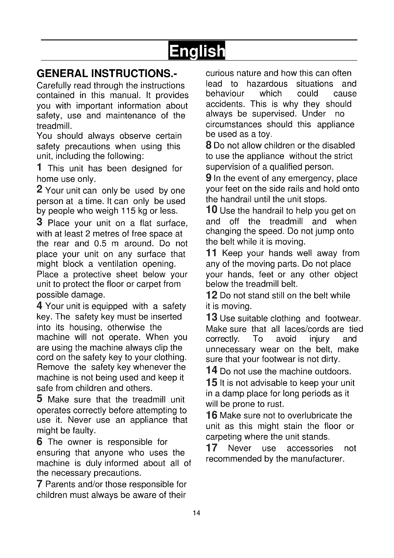 5 Make sure that the treadmill unit operates correctly before attempting to use it. Never use an appliance that might be faulty.