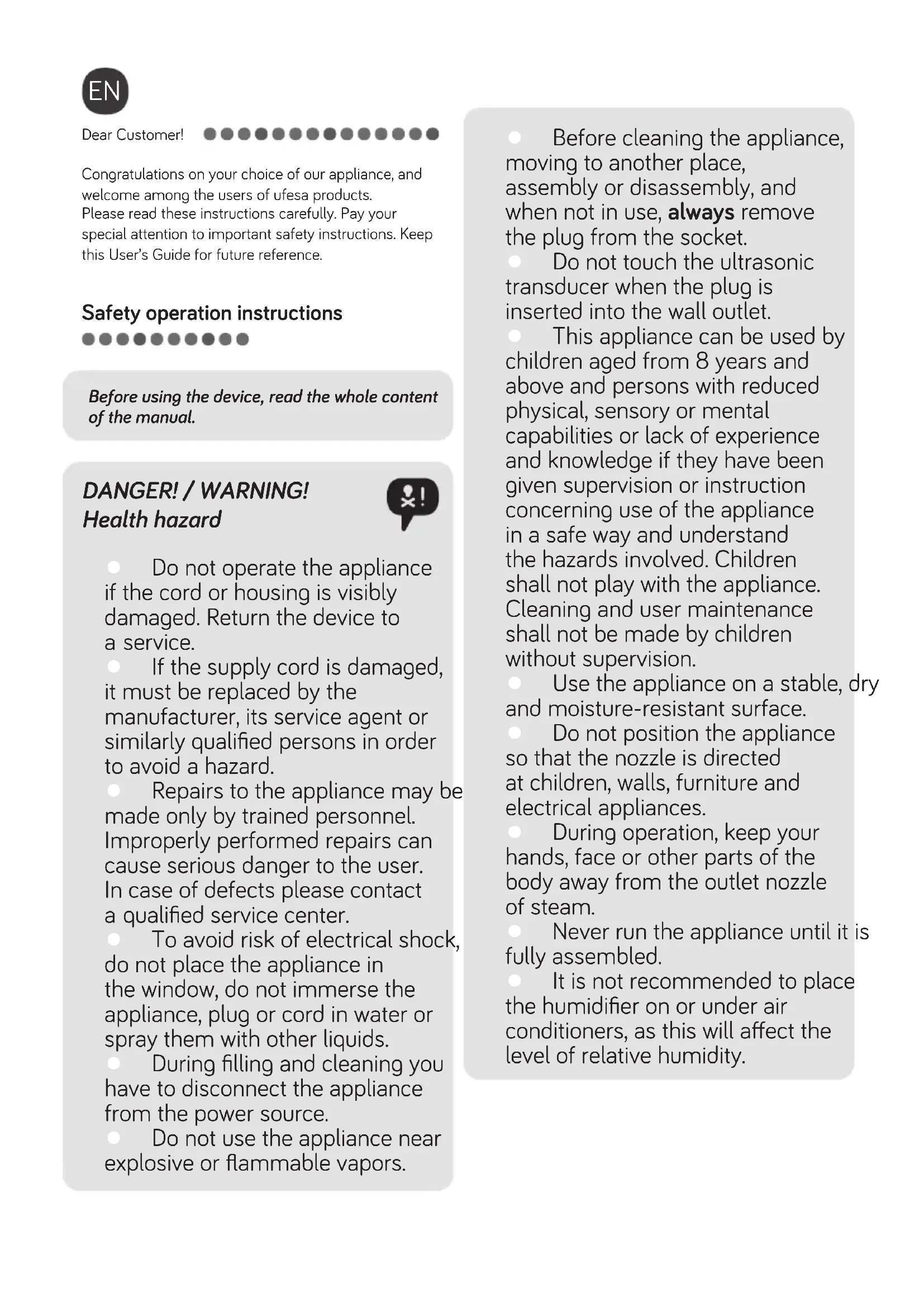HF3000 - Air Humidifier UFESA - Free user manual and instructions