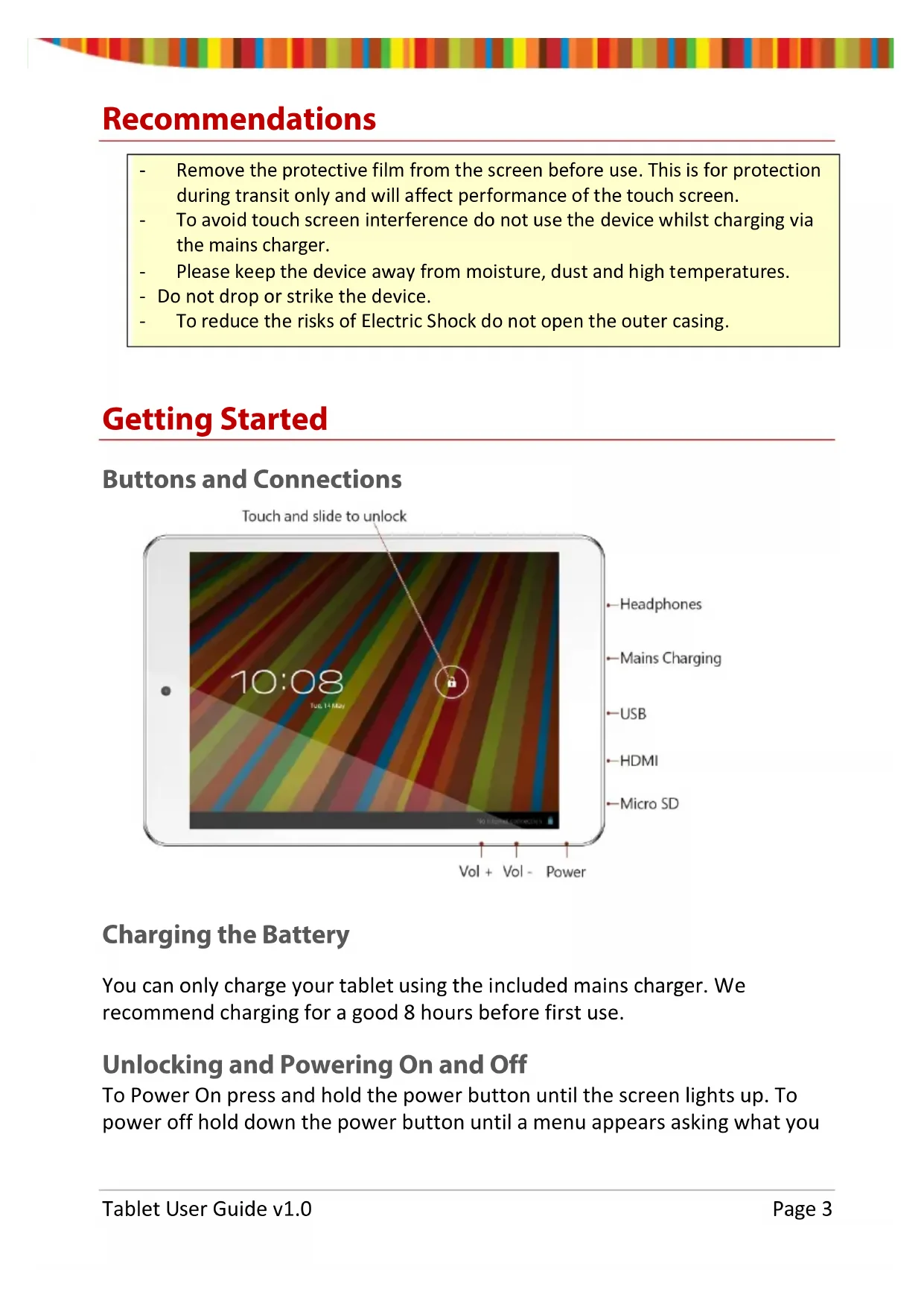 area or to return to the home screen press the home icon. Tablet User Guide v1.0 Page 17Bluetooth Keyboard Case (Optional) Pairing your Keyboard with your Tablet
