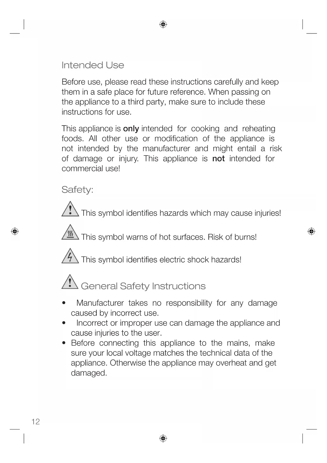 - Only use the appliance for its intended purpose and as described in this manual.