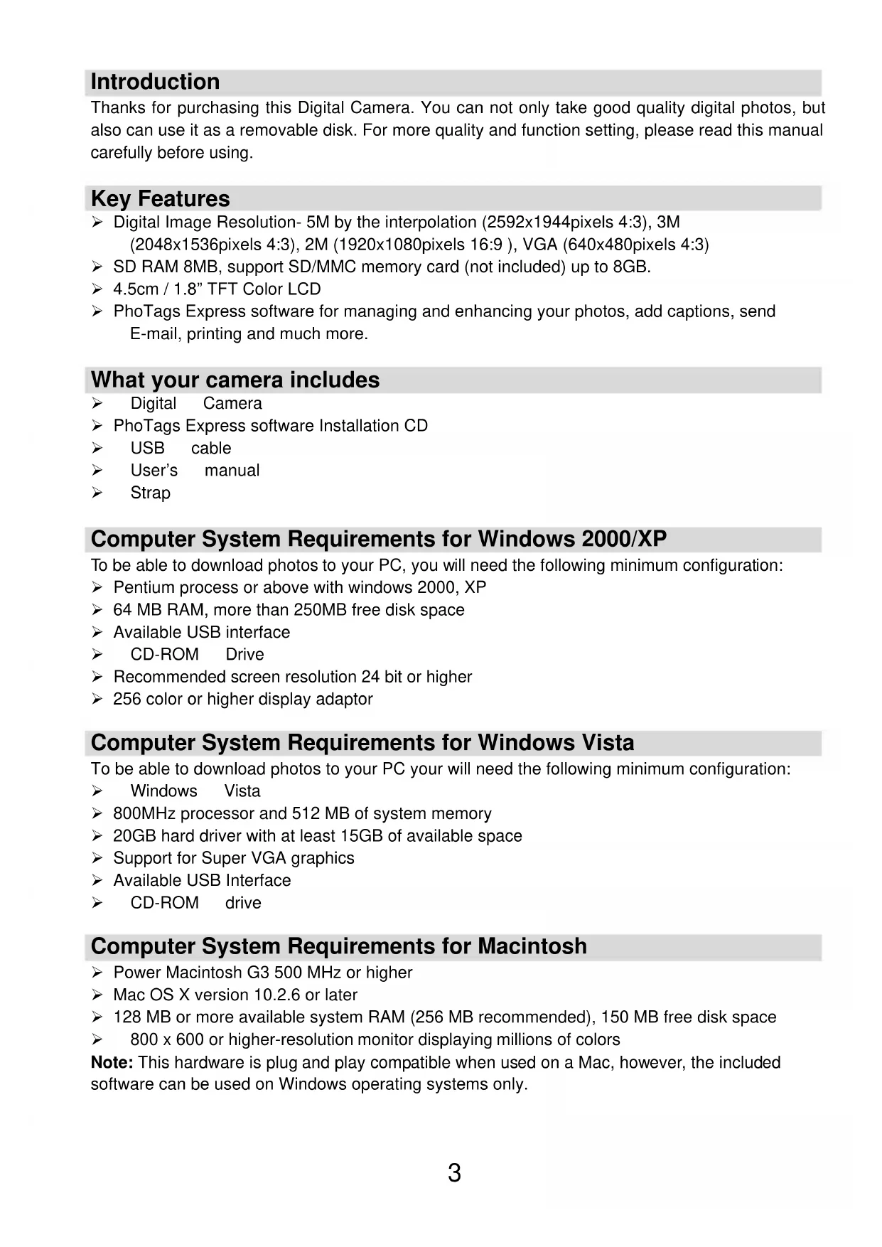 hydride) batteries.5 Installing SD Memory Card Your camera has a memory card slot that enables you to insert any “SD” compatible memory card. Adding a memory card will allow you to increase the capacity of your camera before you have to transfer photos to PC. Installing the SD memory card as below: