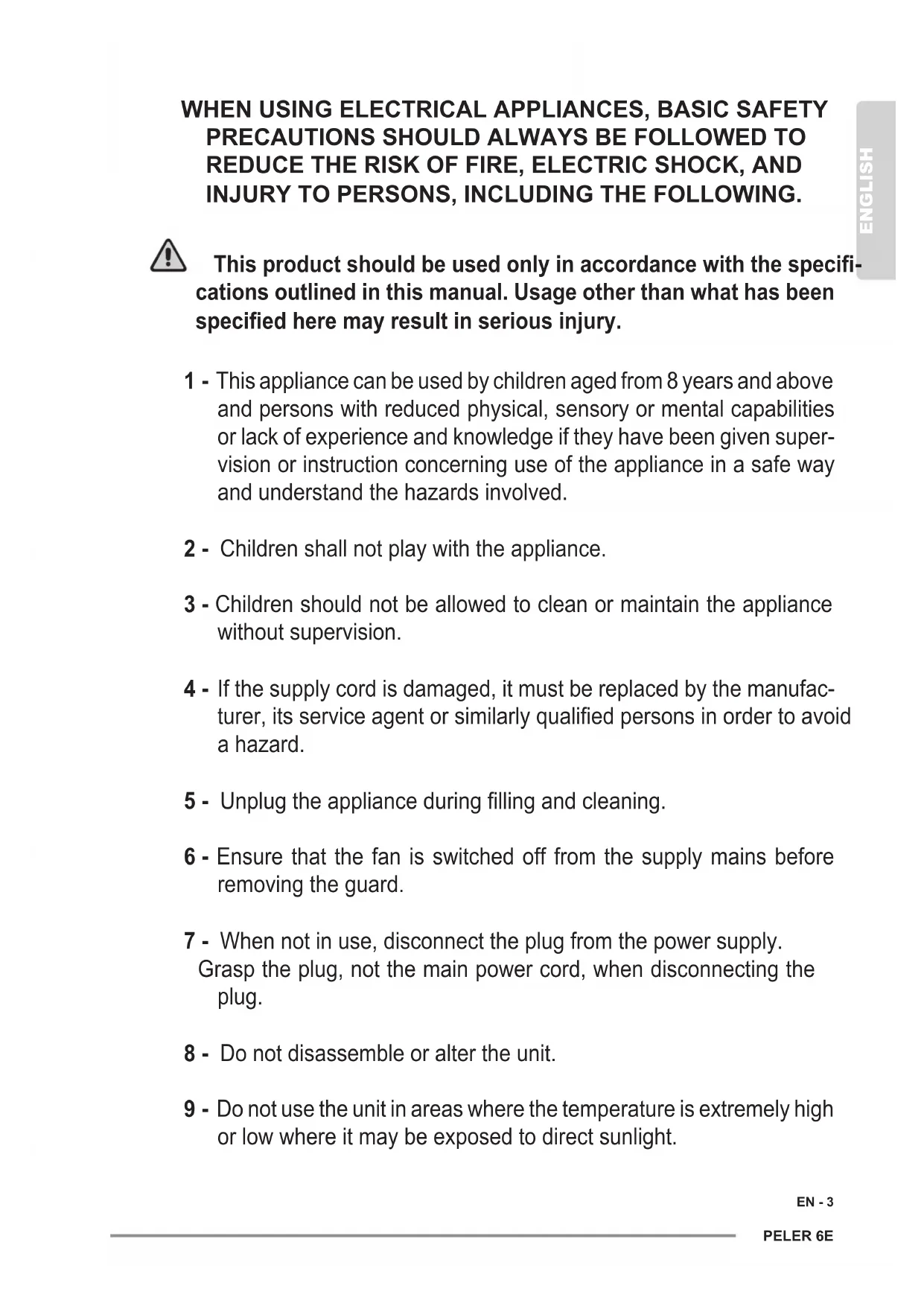 3 - Children should not be allowed to clean or maintain the appliance