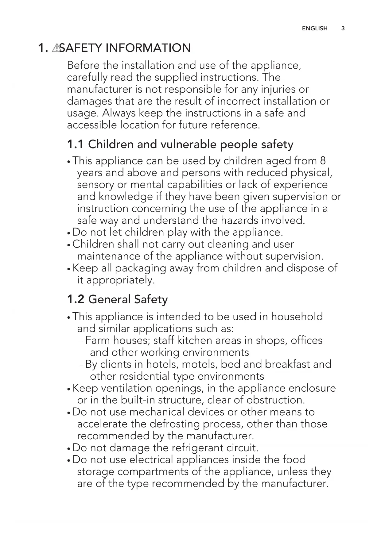 - Do not use electrical appliances inside the food storage compartments of the appliance, unless they are of the type recommended by the manufacturer. ENGLISH 3• Do not use water spray and steam to clean the appliance.