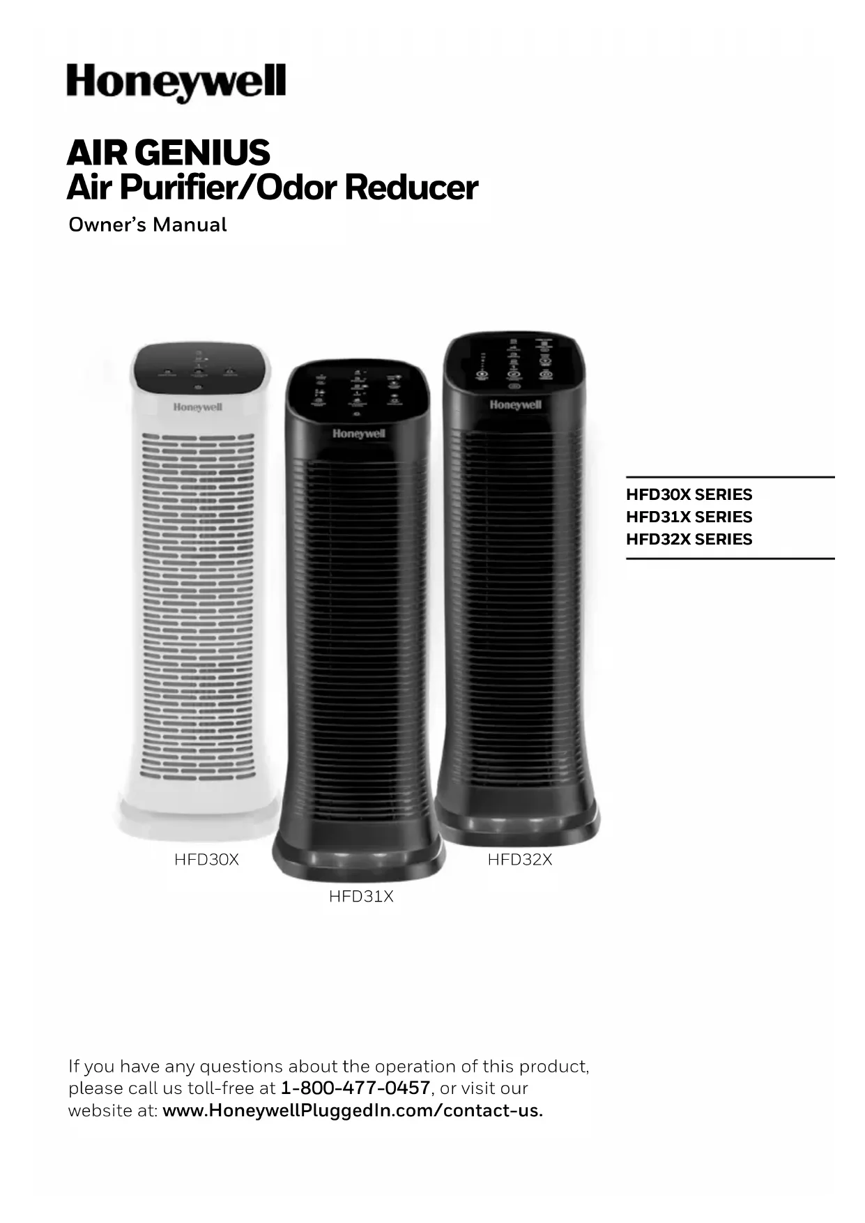 If you have any questions about the operation of this product, please call us toll-free at 1-800-477-0457, or visit our website at: www.HoneywellPluggedIn.com/contact-us. HFD30X HFD31X HFD32X2