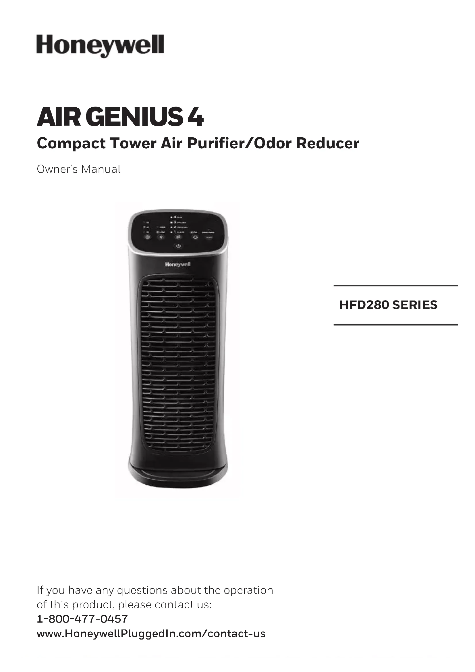 AIR GENIUS 4 Compact Tower Air Purifier/Odor Reducer Owner’s Manual HFD280 SERIES If you have any questions about the operation of this product, please contact us: 1800477-0457 www.HoneywellPluggedIn.com/contact-us2