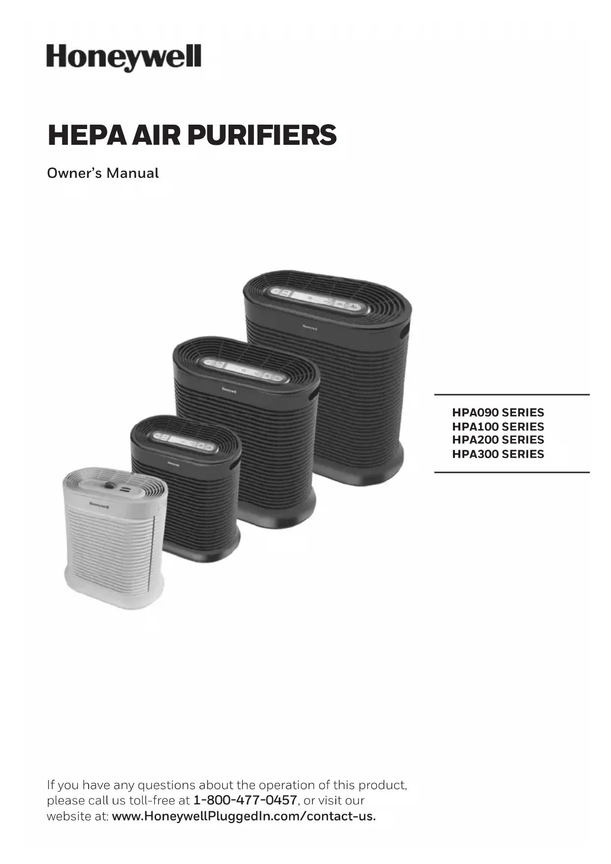 If you have any questions about the operation of this product, please call us toll-free at 18004770457, or visit our website at: www.HoneywellPluggedIn.com/contact-us. HPA090 SERIES HPA100 SERIES HPA200 SERIES HPA300 SERIES