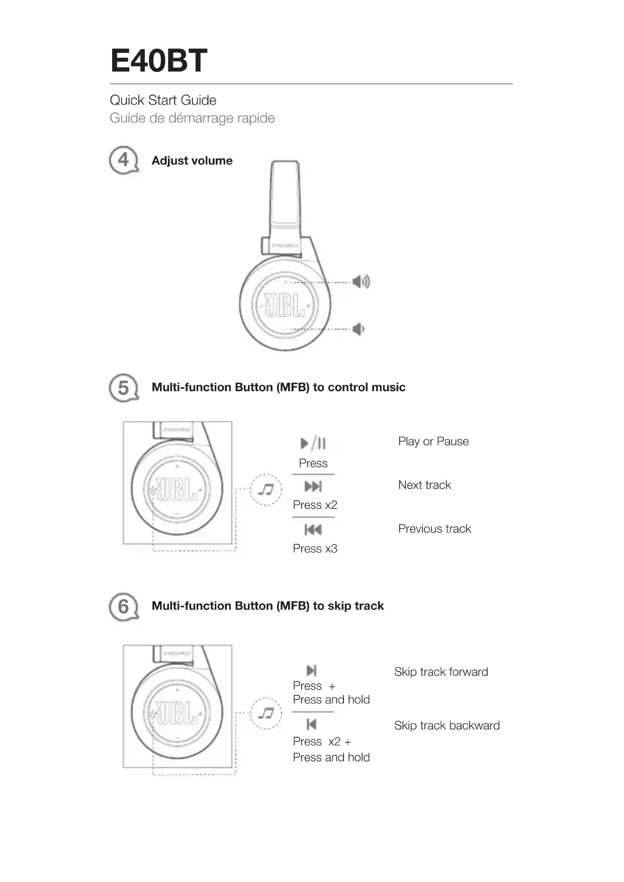 Synchros E40BT - Earphones JBL - Free user manual and instructions