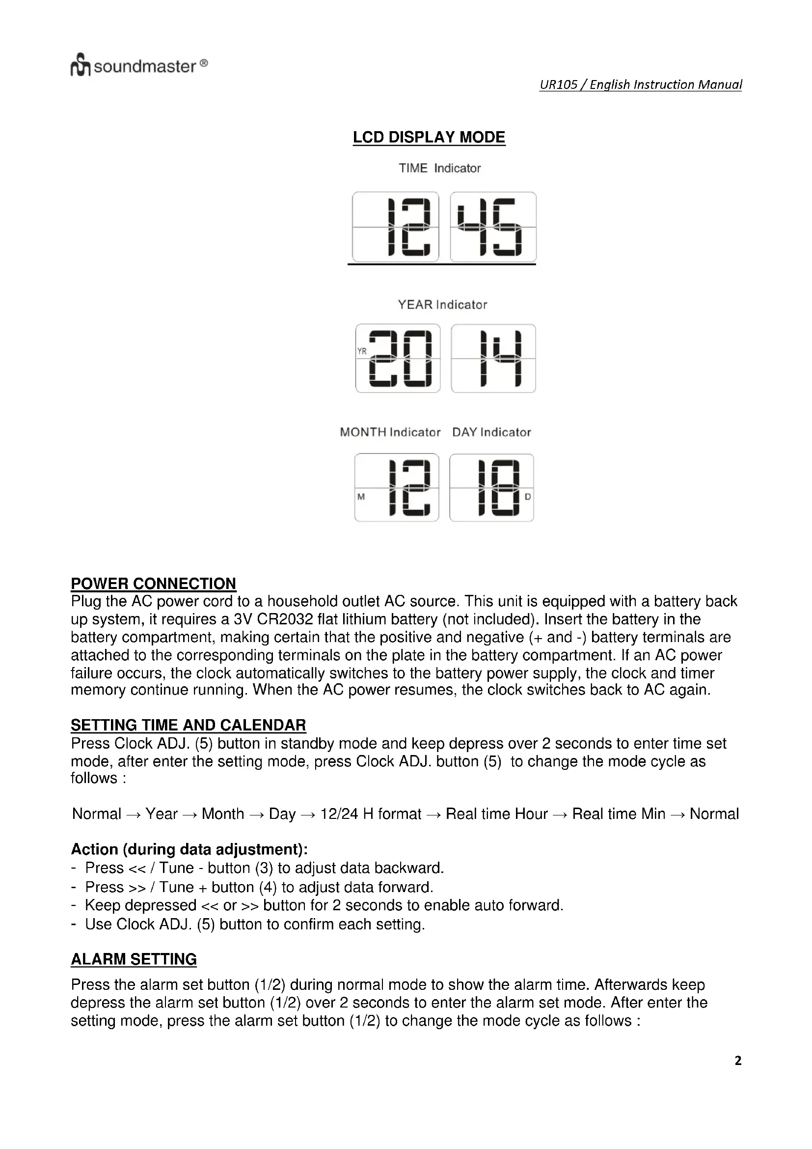 USER MANUAL UR105HBR Soundmaster