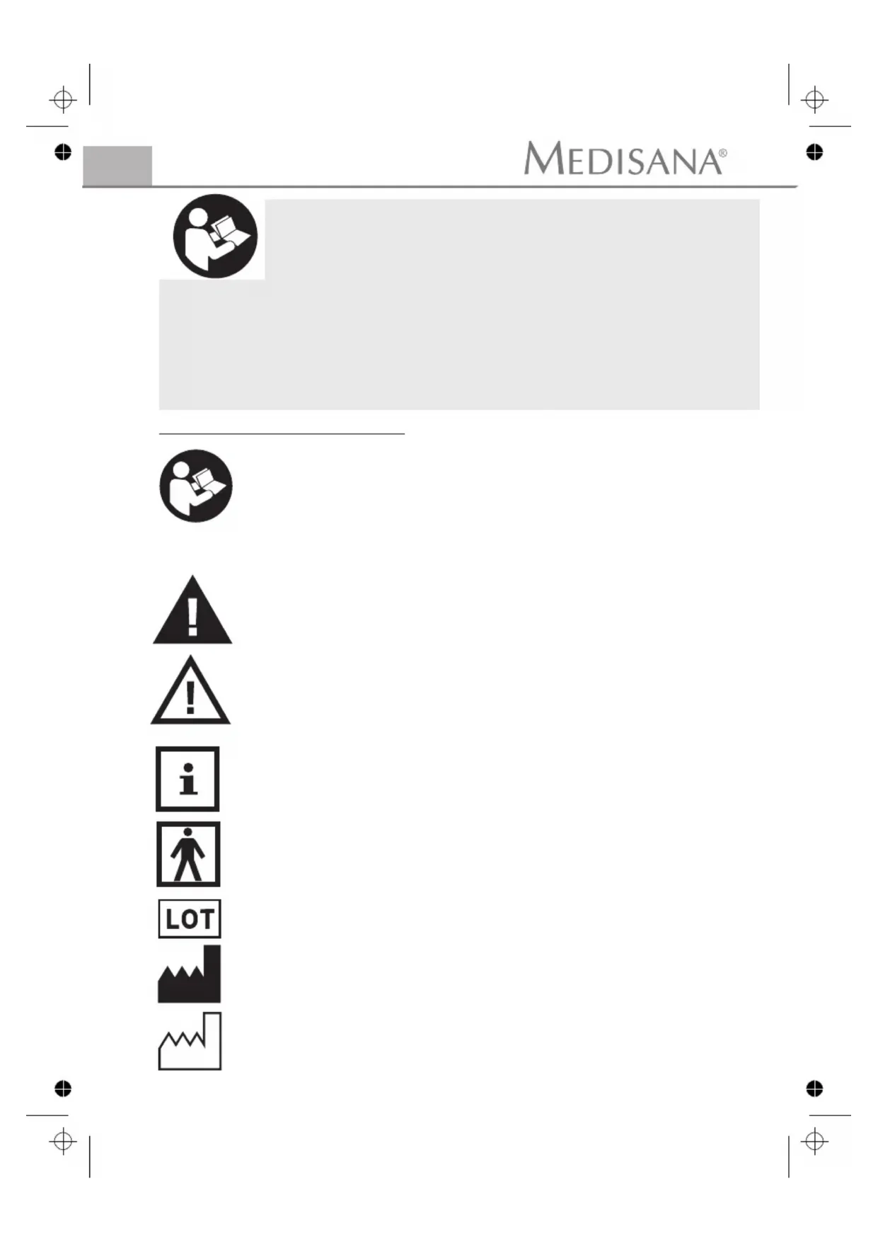 7 Garantie 15This instruction manual belongs to this device. It contains important information about starting up and operation. Read the instruction manual tho- roughly. Non-observance of these instructions can result in serious injury or damage to the device. WARNING These warning notes must be observed to prevent any injury to the user. CAUTION These notes must be observed to prevent any damage to the device. NOTE These notes give you useful additional information on the installation or operation. Explanation of symbols Lot number Manufacturer IMPORTANT INFORMATION! RETAIN FOR FUTURE USE! Read the instruction manual carefully before using this device, especially the safety instructions, and keep the instruction manual for future use. Should you give this device to another person, it is vital that you also pass on these instructions for use. Classification: Type BF applied part Date of manufacture