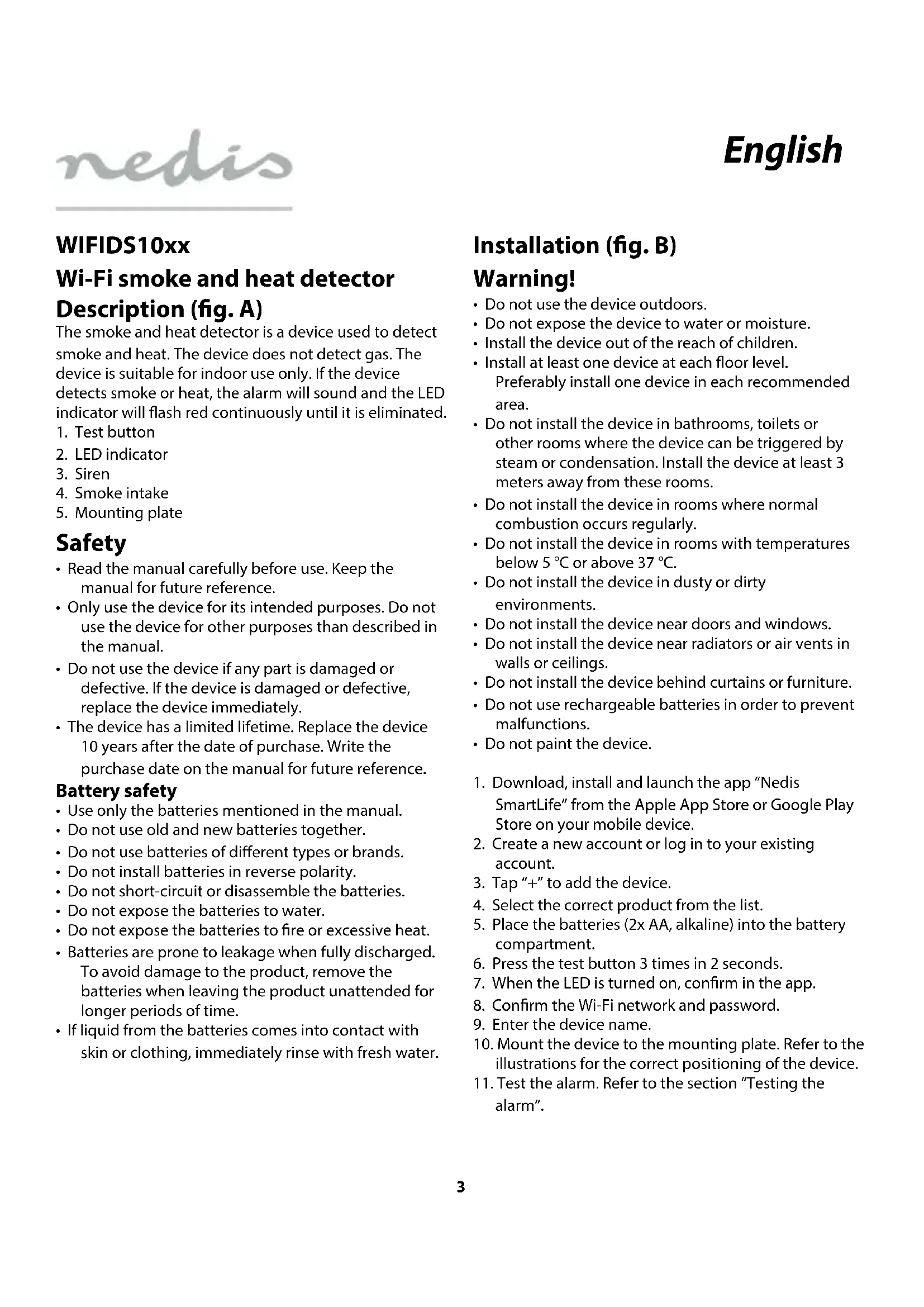 Download the instructions for your Smoke detector in PDF format for free! Find your manual WIFIDS10WT - NEDIS and take your electronic device back in hand. On this page are published all the documents necessary for the use of your device. WIFIDS10WT by NEDIS.
