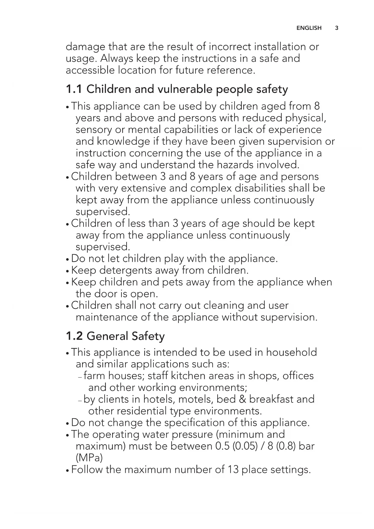 - Follow the maximum number of 13 place settings. ENGLISH 3• If the supply cord is damaged, it must be replaced by the manufacturer, its Authorised Service Centre or similarly qualified persons in order to avoid a hazard.