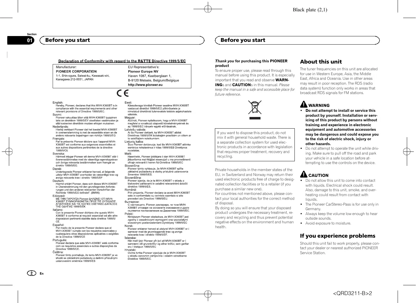 The Bluetooth word mark and logos are registered trademarks owned by Bluetooth SIG, Inc. and any use of such marks by PIONEER CORPORATION is under license. Other trademarks and trade names are those of their respective owners.